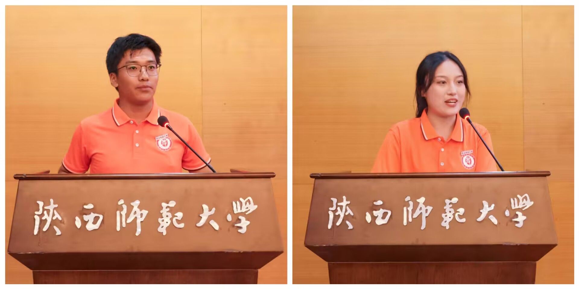随后,2024级本科生代表吕昕冉同学分享了自己因小时候陪同妈妈支教的经历,激发了她对祖国教育事业和陕师大历史学专业的向往,并呼吁同学们要共同担当起民族复兴、教育为先的重任,为更多孩子的梦想插上翅膀;旦增云旦同学回顾了自己享受国家政策从西藏来到内地读书,并为南开附中学长周恩来、老校长张伯苓所激励鼓舞的故事,立志努力学习、提高本领,毕业后扎根边疆、立足边疆,希望同学们都能够继承发扬“西部红烛、两代师表”精神,为祖国西部地区基础教育事业发展和教育强国建设做出贡献。
