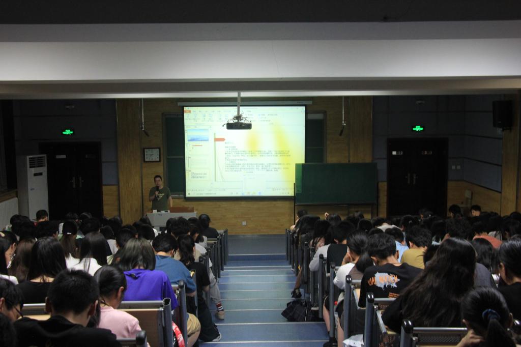 师瑞青首先展示近三年学院非师范毕业生的升学、就业情况,对数据展示出来的就业特征进行分析,引导学生了解近年来学院本科生就业去向、发展前景及当前就业形势。接下来师瑞青分享了近期去杭州调研招聘单位的心得体会,结合娃哈哈集团、西子电梯科技有限公司等知名企业的人才招聘板块、招聘思路,他向同学们强调择业、就业时的注意事项,引导同学们从大局着眼,进行职业生涯的长期规划。同时,他通过毕业生签约现场的真实失误案例,提醒同学们,对于工作选择要进行谨慎考虑,不能马虎大意,与此同时应当不断提高自身能力与素质,增强自身的竞争力。晚点名最后,师瑞青给全体同学布置了暑假作业,要求同学们结合本次晚点名分享的经验对就业市场进行调研,从而将理论与实践紧密结合,更好地规划未来就业。