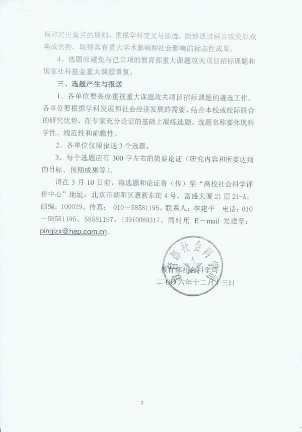 “教育部哲学社会科学研究重大课题攻关项目”选题正处于征集之中,相关要求请看附件。希望各位老师积极参与、提出选题。 请大家最后把提出的选题及相关材料发到马瑞映处(maruiy@snnu.edu.cn)。