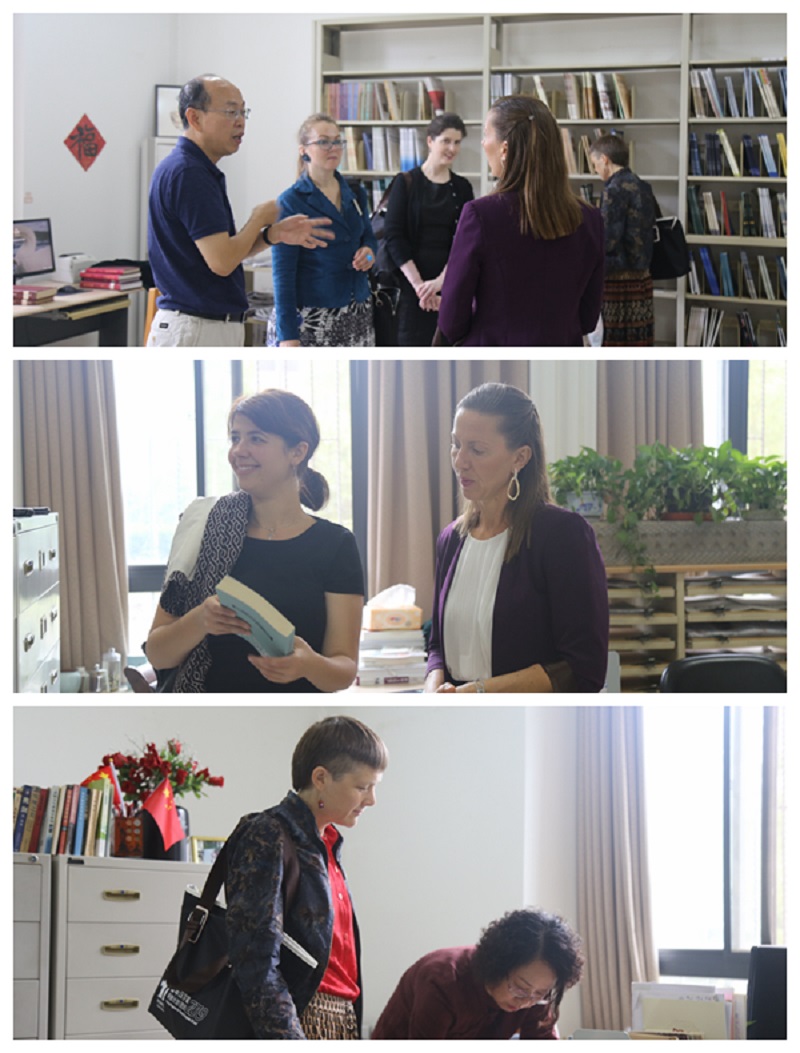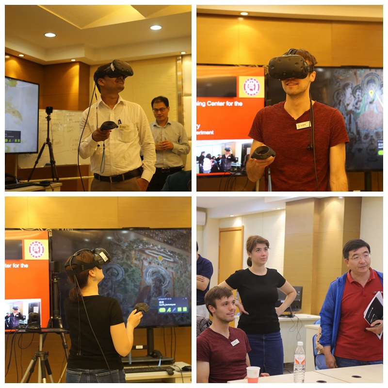 曹伟副院长对本次座谈会进行总结,并开启开班仪式的下一站,参观我院“丝绸之路历史文化虚拟仿真实验教学中心”和学院图书资料室。在丝绸之路历史文化虚拟仿真实验教学中心,青年汉学家们在沙武田教授和张光伟老师悉心指导下,利用VR技术亲身感受敦煌莫高窟的壮观,犹如身临其境。随后又参观了陕西师范大学丝绸之路历史文化研究中心、学院图书资料室,了解我院研究机构的设置及藏书情况。