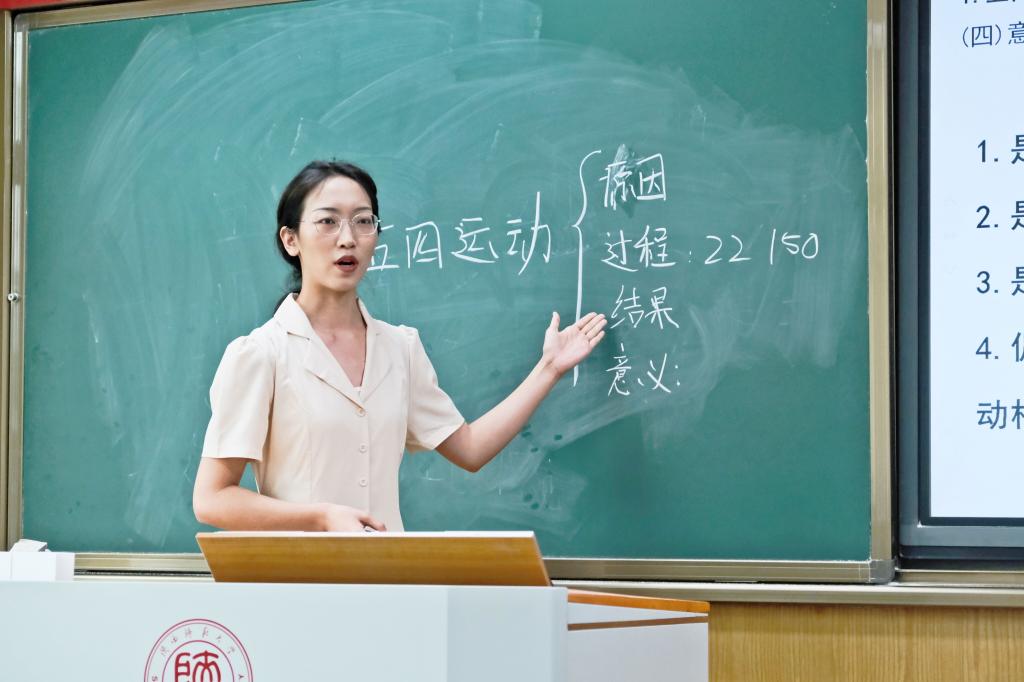 比赛过程中,各位选手选取统编历史教材《中外历史纲要》的教学内容展开了讲授,内容包含制度创新、社会变革、全球交往等各个方面,通过新颖生动的课件设计、层层递进的教学环节、特色各异的教学思路、个性鲜明的教学风格,充分展示了历院学子的师范生综合素养。
