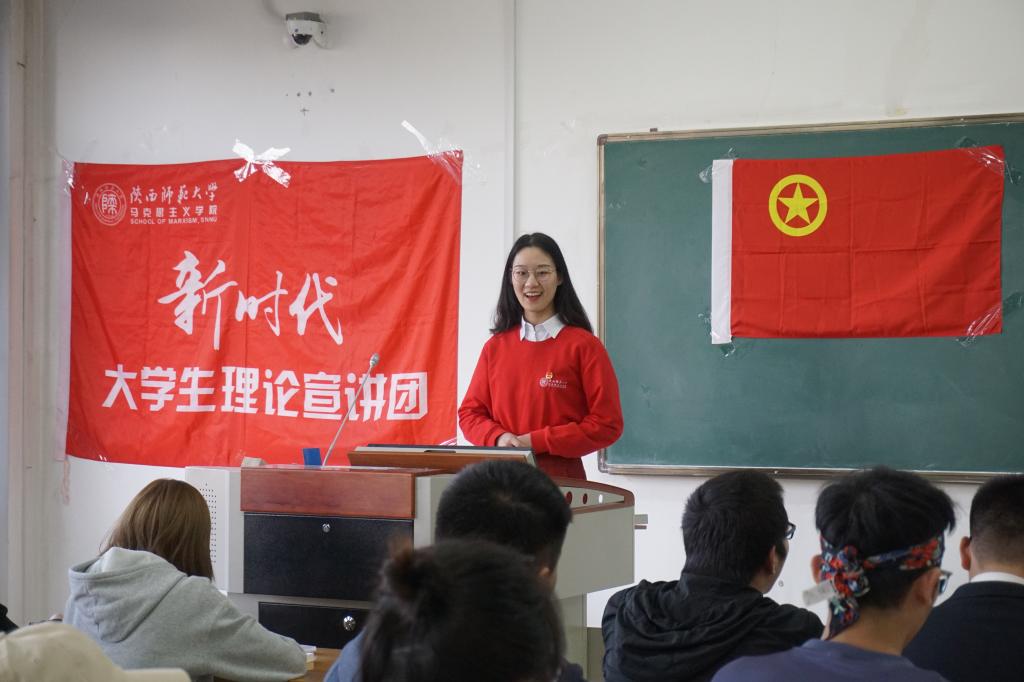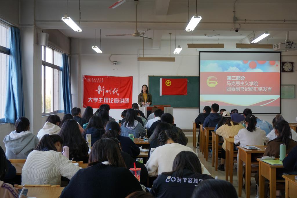 威廉williamhill体育团委副书记陶婷婷对新时代大学生理论宣讲团的到来表示由衷的感谢,并祝愿马克思主义学院与威廉williamhill体育能够携手共进、同舟共济、共创辉煌。