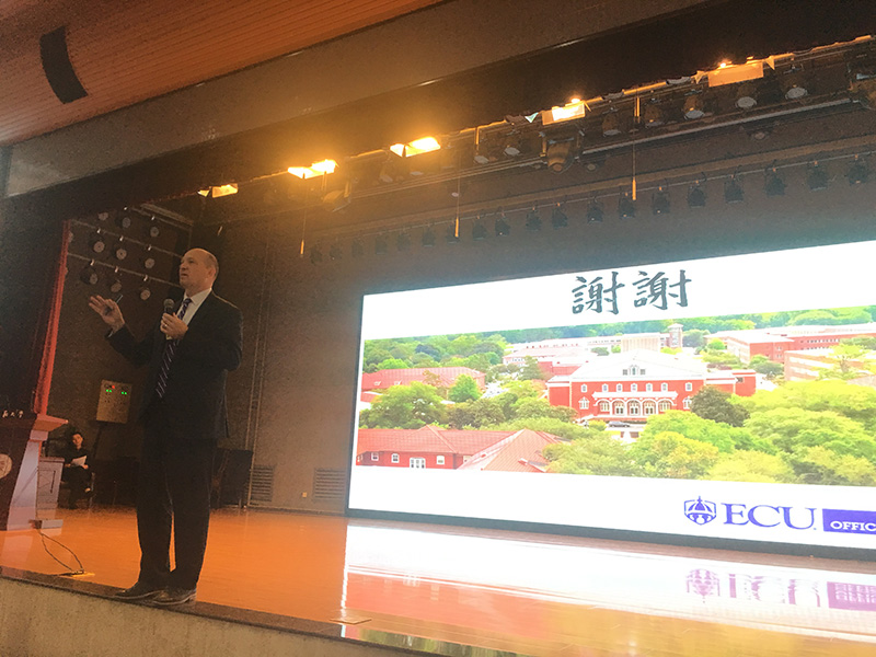 Rezek教授借此次来我校的机会,为我院部分学生做了一场报告,介绍了东卡罗莱纳大学以及美国的大学系统的情况,凭借对留学生管理方面的经验为同学们深入的介绍了赴美国留学方面相关信息,期间同学们向Rezek教授提了很多他们关心的问题,并得到了详细的解答。