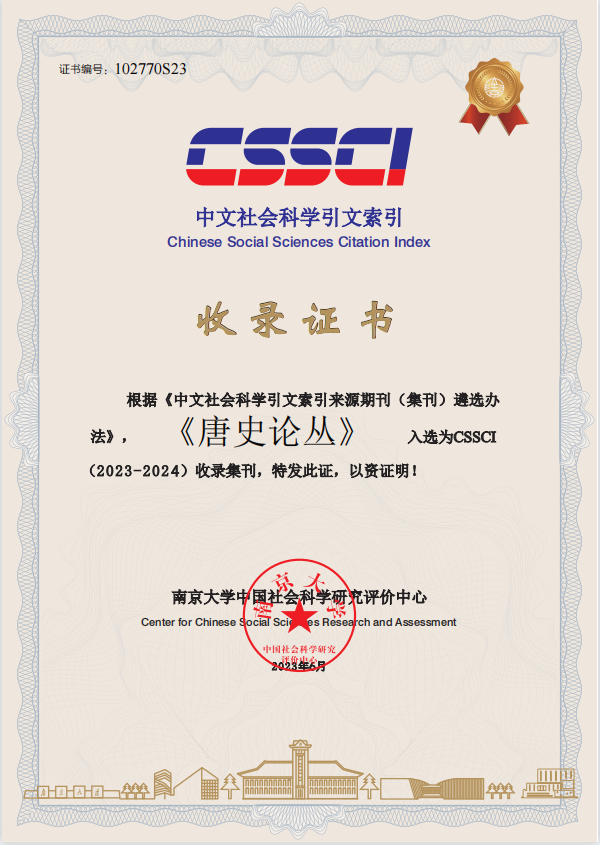 近日,根据《中文社会科学引文索引来源期刊(集刊)遴选办法》,《唐史论丛》入选CSSCI(2023-2024)来源集刊。自2012年至今,《唐史论丛》连续6次入选南京大学中国社会科学研究评价中心CSSCI来源集刊,2022年入选中国历史研究院学术性集刊资助名录、2023年入选中国社会科学评价研究院“2022年度中国人文社会科学期刊AMI综合评价”核心集刊。