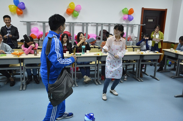 首先,播放所有同学视频,虽说这些面孔很熟悉,但却收到了意想不到的好效果。紧接着,同学们表演了自创小品《屋里屋外》,赵静一、陈望、曹昊、纪新宇同学以精湛的方言引得大家捧腹大笑,小品以“信任”为主要切入点,讲述了保姆、送快递的、维修工三个角色互相猜疑,最终明白了什么是信任的故事,小品引人入胜,引人深思。同学们还进行了精彩的才艺表演,如由郑康奇、郭子睿、杨阳三位同学带来的三首歌曲联唱《旅行》《南山南》《老男孩》,杨一凡同学的古琴表演。在游戏环节中,由两位导师各自领队,并分别取名为“春华队”和“秋实队”,表达了对我们的殷切期盼和祝福,师生共同参与,使活跃的气氛被带到高潮。在最后一个“悄悄对你说”的活动中,通过面对面的交流,同学们都很放松。刘庆、张宗品两位老师分别发言,并致以祝福,希望14级历史创新班在今后营造更好的班风、学风,相信大家在这个温暖的大家庭中会愉快度过大学生活。