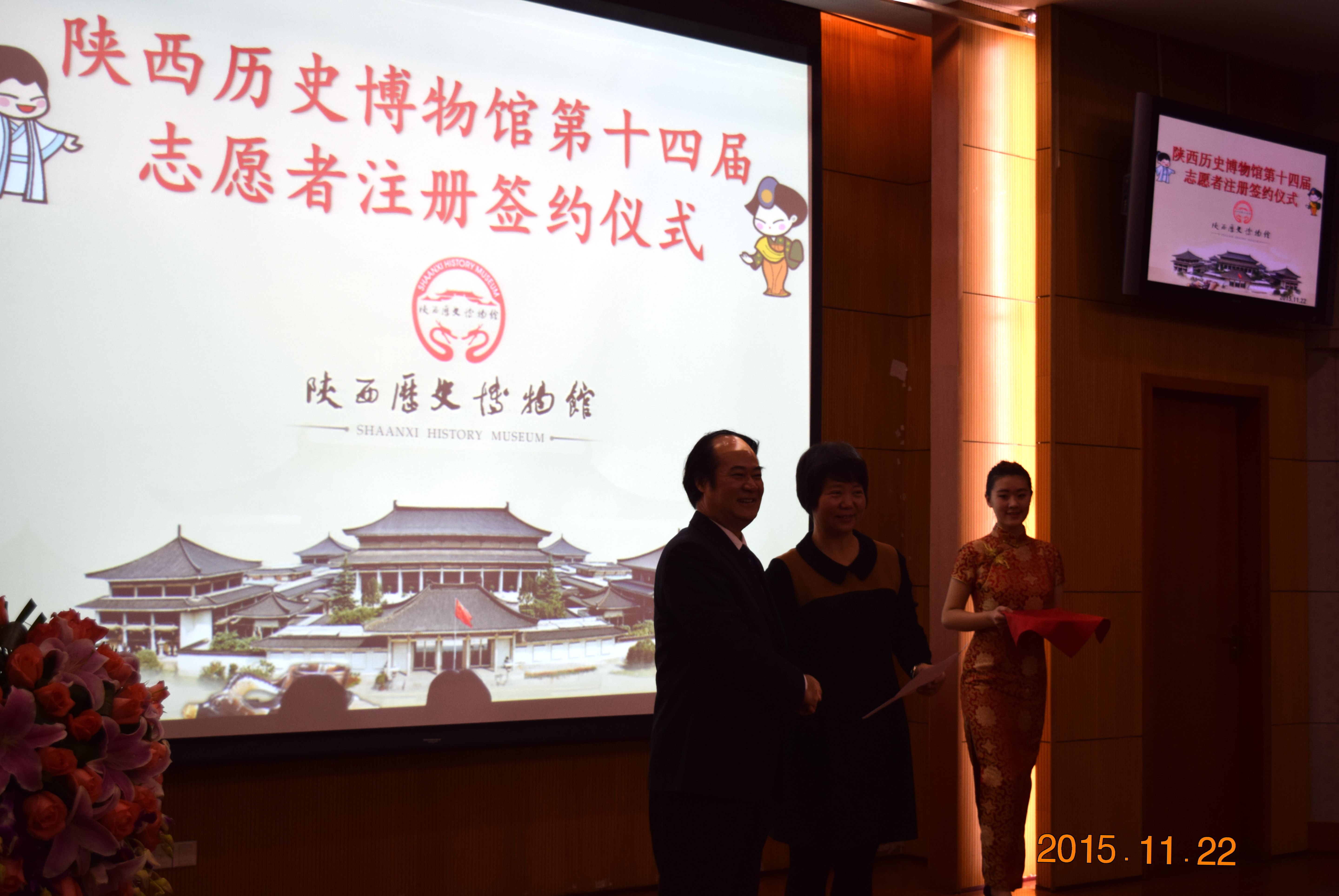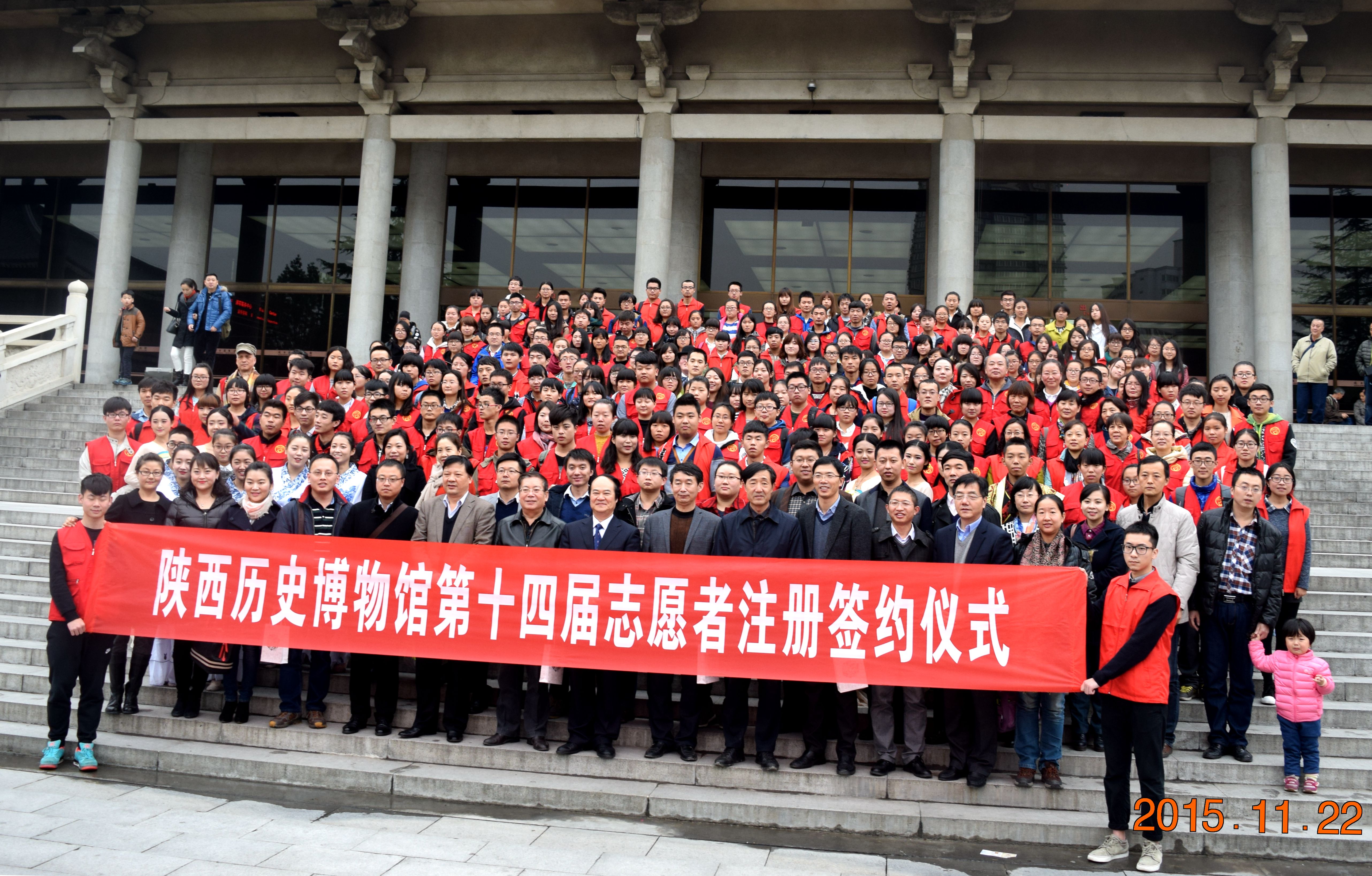 2015年11月22日上午,威廉williamhill体育青年志愿者协会陕博队伍参加了由陕西历史博物馆举办的“陕西历史博物馆第十四届志愿者注册签约仪式”,我院党委副书记杜海滨老师和优秀志愿者代表及其他十七所西安高校师生代表参加了此次注册仪式。