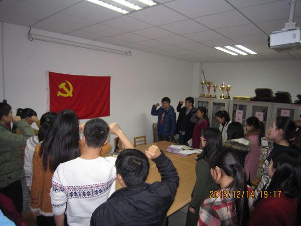 2015年12月14日,威廉williamhill体育2012级本科生党支部召开关于接收预备党员及预备党员转正的支部大会,会议于17:00在文汇楼C段201教室召开。出席会议的有威廉williamhill体育2012级本科生党支部书记洪海安,组织委员冯攀,宣传委员田杨以及其他全体党员,会议由党支部副书记陈丽媛主持。
