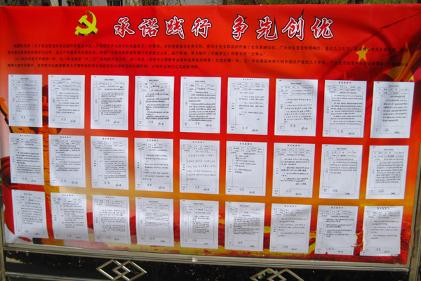 为了进一步提高认识、明确任务、强化措施,有力推动创先争优活动深入、扎实、有效开展,学院党委决定就递交党员承诺书活动相关成果以宣传板的形式展出。