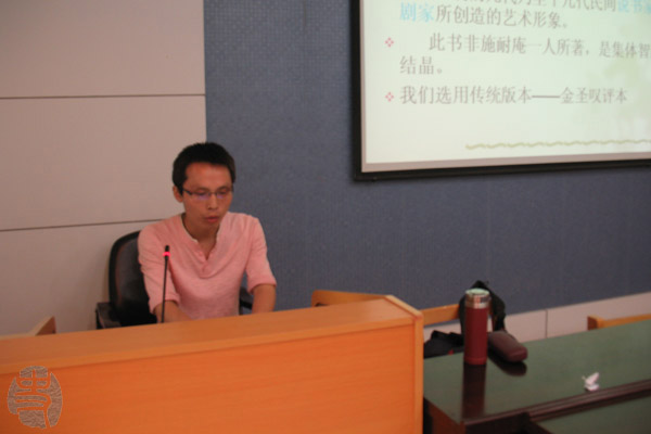 报告上,杨家强同学首先指出,《水浒》并非一人所著,其所记人物及其行事除少数见于史籍文献外,其余皆是宋元至明时期小说家、话本艺人所塑造的艺术形象;因此作为集体智慧的结晶,研究《水浒》中其人其事是具有深刻意义的。随后,杨家强同学从《水浒》中的人虎大战分析了个人成名的因素,并以潘金莲为代表剖析了《水浒》作者的“禁色”倾向,又从说林冲总结出人们拥有幸福人生的底线。整场报告思路清晰,抽丝剥茧,层层深入,令人耳目一新。
