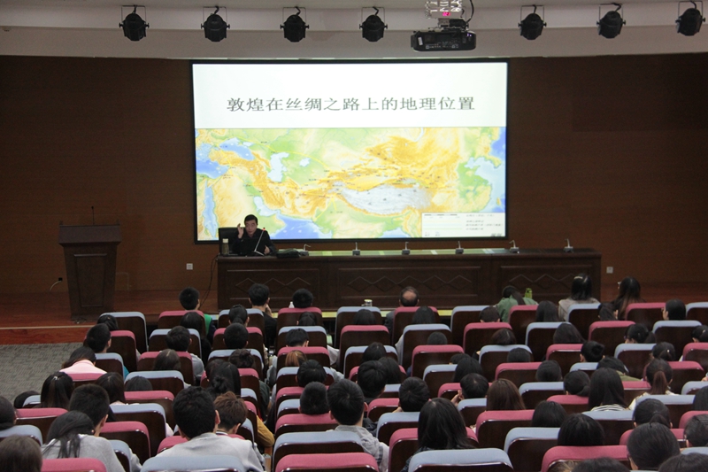 会议开始,威廉williamhill体育洪海安老师向大家介绍了此次带队教师,并对此次敦煌考察的相关事宜进行了说明,希望同学们认真完成该课程各项要求。随后,学院党委书记杜海斌老师指出敦煌考察是威廉williamhill体育的特色,希望同学们抓住这次学习机会,在去之前应充分做好学术准备,并对带队教师和全体学生提出了要求,希望大家团结协作,顺利完成此次专业实践考察的任务。为了进一步增强同学们对此次考察知识的了解。学院特意邀请沙武田教授做了《丝绸之路上的敦煌》专题讲座,沙武田教授分别从敦煌在丝绸之路上的地理位置、汉文化的边疆守护、敦煌文化的民族性、华戎所交都会、敦煌的佛教文化、藏经洞的文献与文物、敦煌与长安之间的关系、国际显学的号召力与魅力、一带一路新时代背景下敦煌的历史担当九个方面来阐释“丝绸之路上的敦煌”。沙教授的讲解系统全面,从古代的敦煌谈到当代背景下的责任,博古通今,一气呵成。通过沙武田老师生动的介绍,丰富的图文资料,同学们对敦煌有了进一步的了解,更加激发了同学专业考察的兴趣。