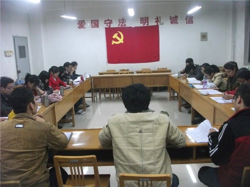 2011年12月1日晚,09级本科生党支部所有党员、预备党员同志在09级本科生党支部副书记孙巍老师的指导下,在文渊楼425教室开展了关于学习党的“十七届六中全会精神” 的学习心得恳谈会。