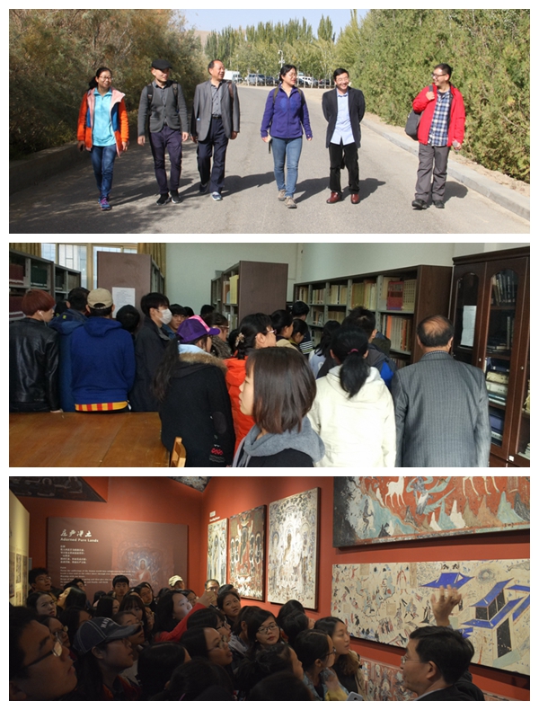 10月17日上午8:00,全体师生参加了由敦煌研究院院长王旭东先生主讲的题为《人类的敦煌共同守望》的讲座,同学们获益匪浅。随后,在沙老师的带领下我们参观了敦煌研究院敦煌学信息中心图书馆、敦煌研究院院史陈列馆、莫高窟陈列中心博物馆以及莫高窟创建1650年特展。在沙老师认真负责地讲解下,我们对敦煌学有了更进一步的认识。下午17:30,全体师生来到鸣沙山—月牙泉景区,面对一望无际的大漠,同学们无不惊叹于大自然的神奇和壮观,个个争先恐后地登上沙漠顶部欣赏大漠风光。