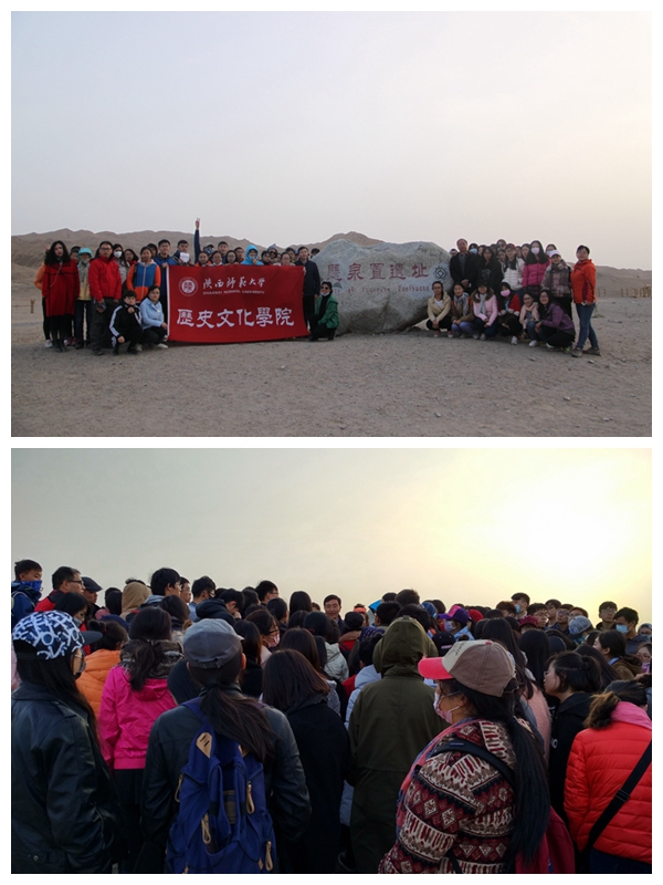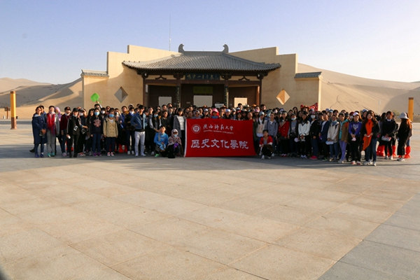 10月15日清晨,带队教师及2014级全体本科生从西安出发,于16日凌晨5点50分抵达嘉峪关火车站,稍作休息后便前往嘉峪关关城进行参观。通过对嘉峪关关城的参观,同学们感受到了天下第一雄关的气势。接下来,便去往悬壁长城,陡峭的山体、容易脱落的崖体、猎猎山风都为同学们的攀爬增加了难度,同时大家不禁对往昔在此驻扎的将士肃然起敬。下午13点,全体师生驱车前往魏晋砖壁画墓进行参观,在讲解员的介绍下,同学们对于魏晋时期当地的政治、经济和文化习俗有了一定的了解。随后,我们去往“天下第一墩”——嘉峪关西长城最南端的一座墩台、明代万里长城最西端的一座墩台,也是长城沿线建筑规模最壮观、保存最完整的一座古代军事关隘。下午18:00结束在嘉峪关参观后,全体师生驱车前往本次考察的重要目的地——敦煌,晚上22:30全体师生安全抵达敦煌市。