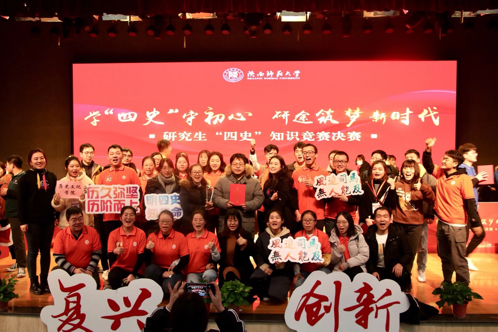 12月9日下午,陕西师范大学“学‘四史’守初心,研途筑梦新时代”研究生“四史”知识竞赛决赛在长安校区新勇活动中心学生剧场举行。经过激烈角逐,我院以最高分问鼎冠军!威廉williamhill体育副院长李秉忠、党委副书记程蕾、研究生秘书齐耐心、研究生辅导员孙懿文和马瑶带队观赛,研究生亲友团到现场加油助阵。