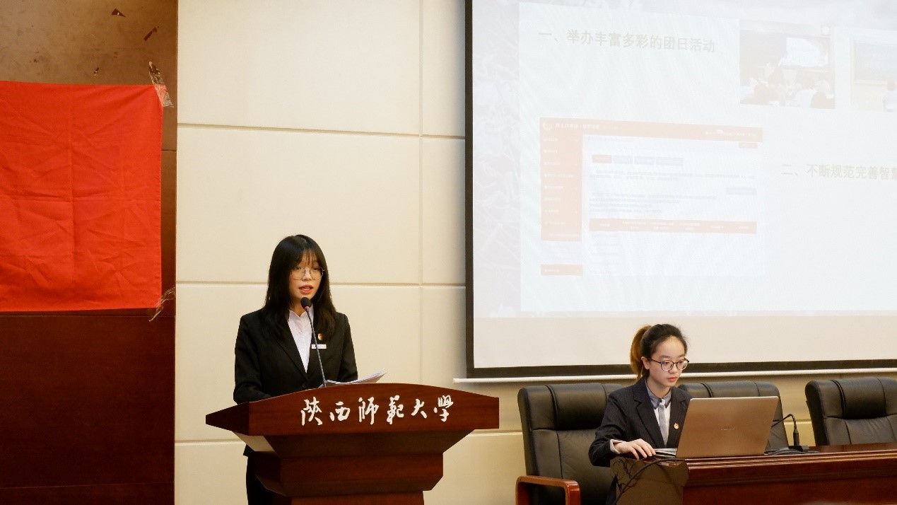 陶婷婷同学向大家详细阐述了我院上一学期的团学工作总结和下一学期的工作规划。汇报在细数上一学期团委各项特色活动的同时,还对本学期拟将举办的活动作了说明与规划。此份报告总结经验教训,启示将来,充满着对更好地建设我院团学工作的热情与期待。