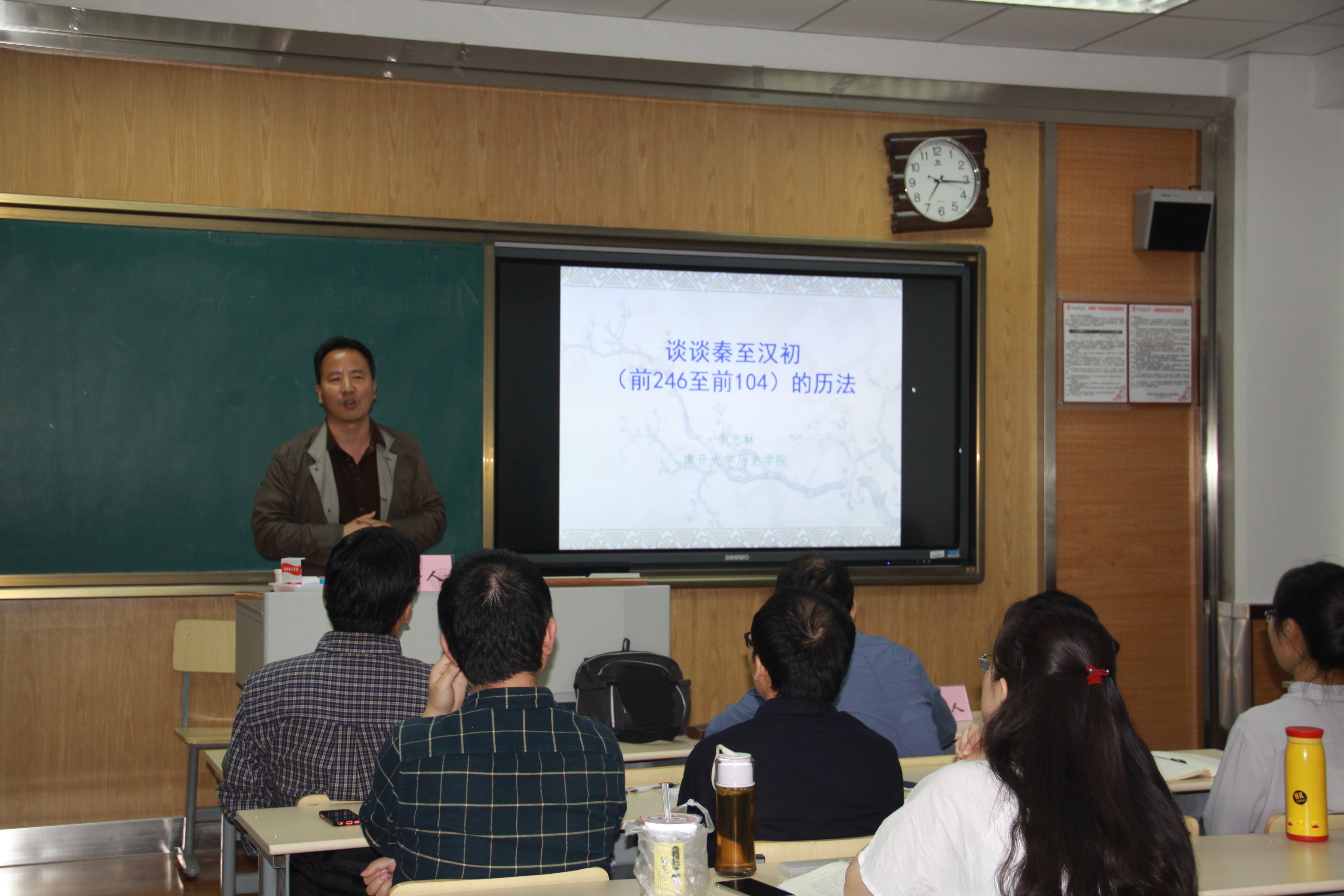 讲座伊始,李教授先介绍了中国古代历法中“四分法”和“古六历”等背景知识,在此基础上进一步提出了本次讲座要探讨的问题——为什么《史记》《汉书》记载此期所用的颛顼历往往和实朔干支不合?李教授利用近年出土的大量竹简,如周家台秦简历谱、张家山汉简历谱和银雀山汉简历谱,结合传世文献,共考出朔干支305条、日干支40条、气干支7条,以此为基础对历朔材料进行修订和补充。由此得出秦至汉初时实际行用的历法表。然后,依据三组历日密集的历简,按照四分术推步原则,划分秦至汉太初改历前不同历法的运行阶段,结合文献,推算出秦至汉初的朔闰表。