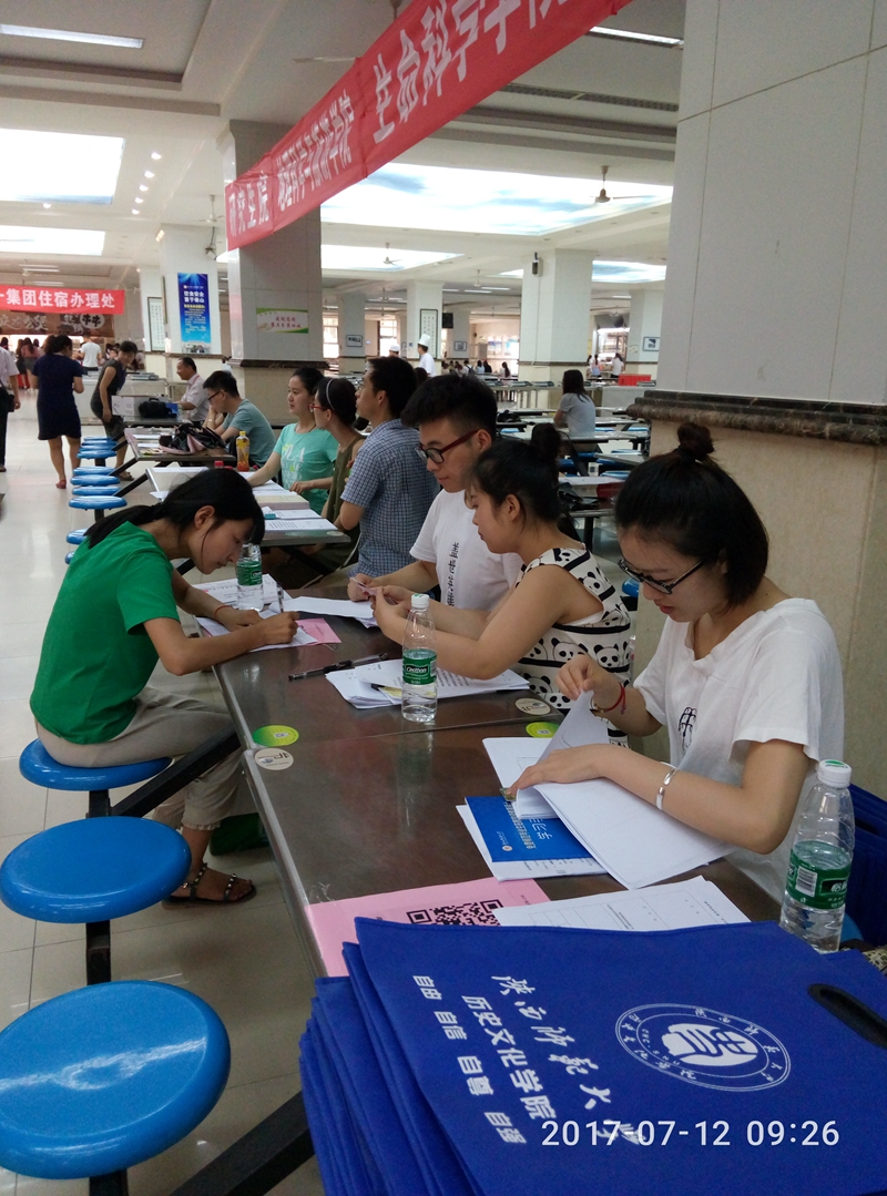 上午8:30以后,我院2017级免费师范生教育硕士陆续前来报到,在核对新生的录取通知书和身份证等信息后,志愿服务方超、李卓、顾梦宇三位同学协助新生填写了信息汇总表、告知书等,并耐心向其讲解报到流程。此外,学院还给所有报到教育硕士准备了专用手提包和水,给返校的同学在这炎热的夏天送去了一份具有爱心的礼包,受到学生们纷纷称赞。下午16:30迎接工作结束时,共有71名同学前来报到。随后,研究生辅导员通过电话和QQ及时联系未按时报到的同学,对其未能报到的原因进行了解与登记。