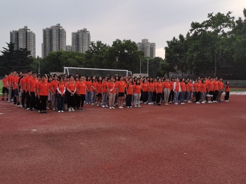 晨光绚烂,惠风和畅,同学们身着院服,在班干部的有序组织下迅速就位于各班指定位置,等待升旗仪式的开始。