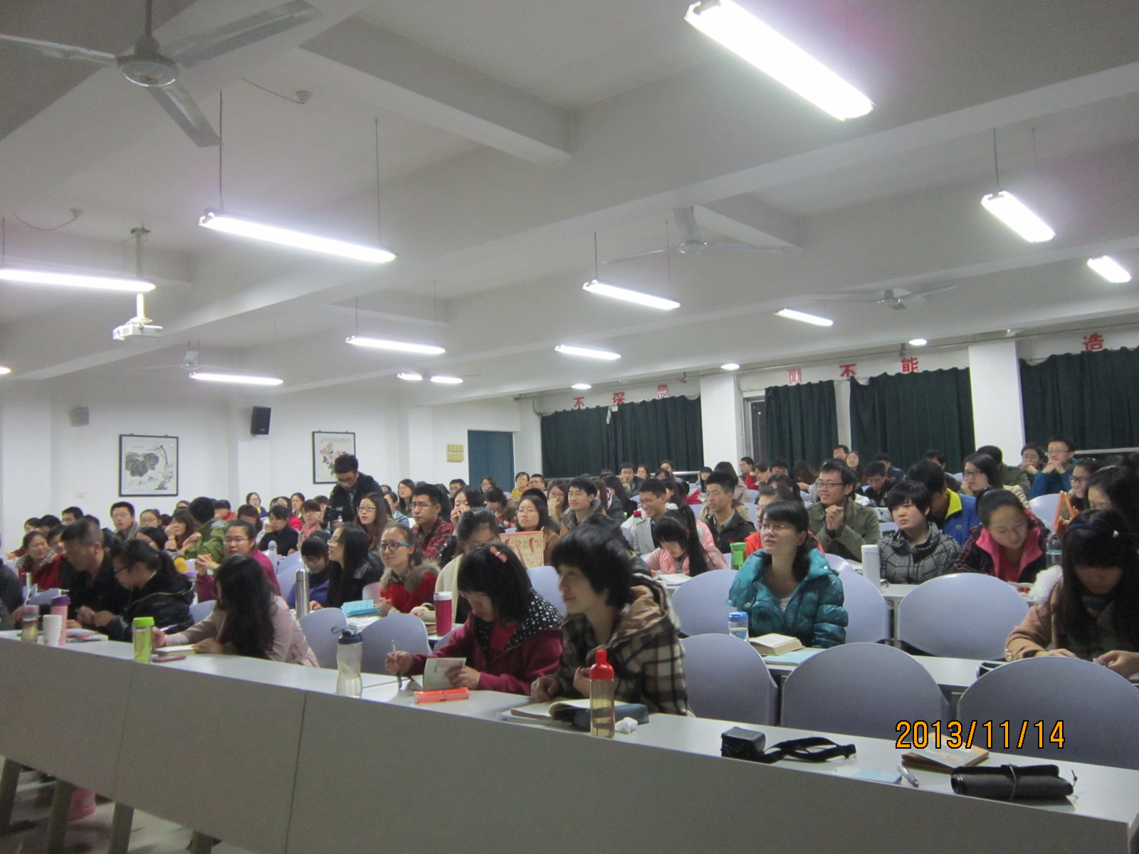 最后徐老师就2011级师范生听课提出了自己的建议。听课的关注点有三,分别是:听教学思路、听老师提问和观察老师举止。为师范生日后更有效地听课、评课,提高自身教学水平明确了方向。同学们纷纷这场讲座举办得非常及时,要学习徐老师对于中学教学教育锲而不舍的钻研精神,努力磨炼教师技能,争取早日成为一名合格的中学老师。本期“教师•领袖•说者”研习平台圆满结束.