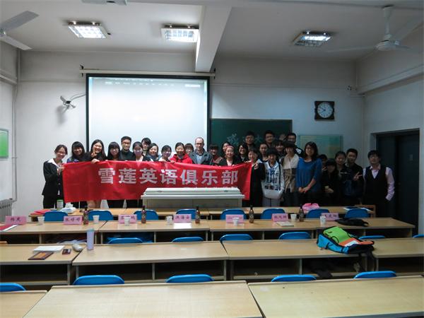 随后,举行了新一届雪莲英语俱乐部聘书颁发仪式。接着,雪莲英语俱乐部新任主席杨爽在致辞中介绍了本学年的工作规划与设想,部员代表13级播音主持专业徐力同学的演讲,表达了新成员们对英语的热爱与执着。随后John与在场嘉宾与会员进行了英语互动,气氛轻松、活泼,大会在全场合唱《We are young》的歌声中落下帷幕。最后,所有人合影留恋。