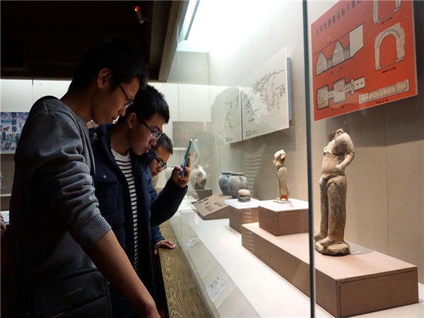 10月15日清晨,带队教师及2015级全体本科生从西安出发,于16日凌晨5点抵达嘉峪关火车站,尽管冷风呼啸,也抵挡不住同学们的热情,稍作休息后便前往嘉峪关关城进行参观。嘉峪关南临祁连山,北凭黑山,在明朝将军冯胜的带领下,当时的战士百姓历经一百六十八年的时间,在两山之间河西走廊的最窄处建成此关城。踏上嘉峪关关城的那一刻,同学们无不感慨这“天下第一雄关”的威武气势。下午13时,全体师生驱车前往魏晋墓陈列馆、魏晋新城墓地进行参观,通过一系列的考察学习,同学们对于魏晋时期当地的政治、经济和文化、婚丧习俗有了一定的了解。结束在魏晋新城墓地的参观后,全体师生驱车前往本次考察的重要目的地——敦煌,晚上21时全体师生安全抵达敦煌市。