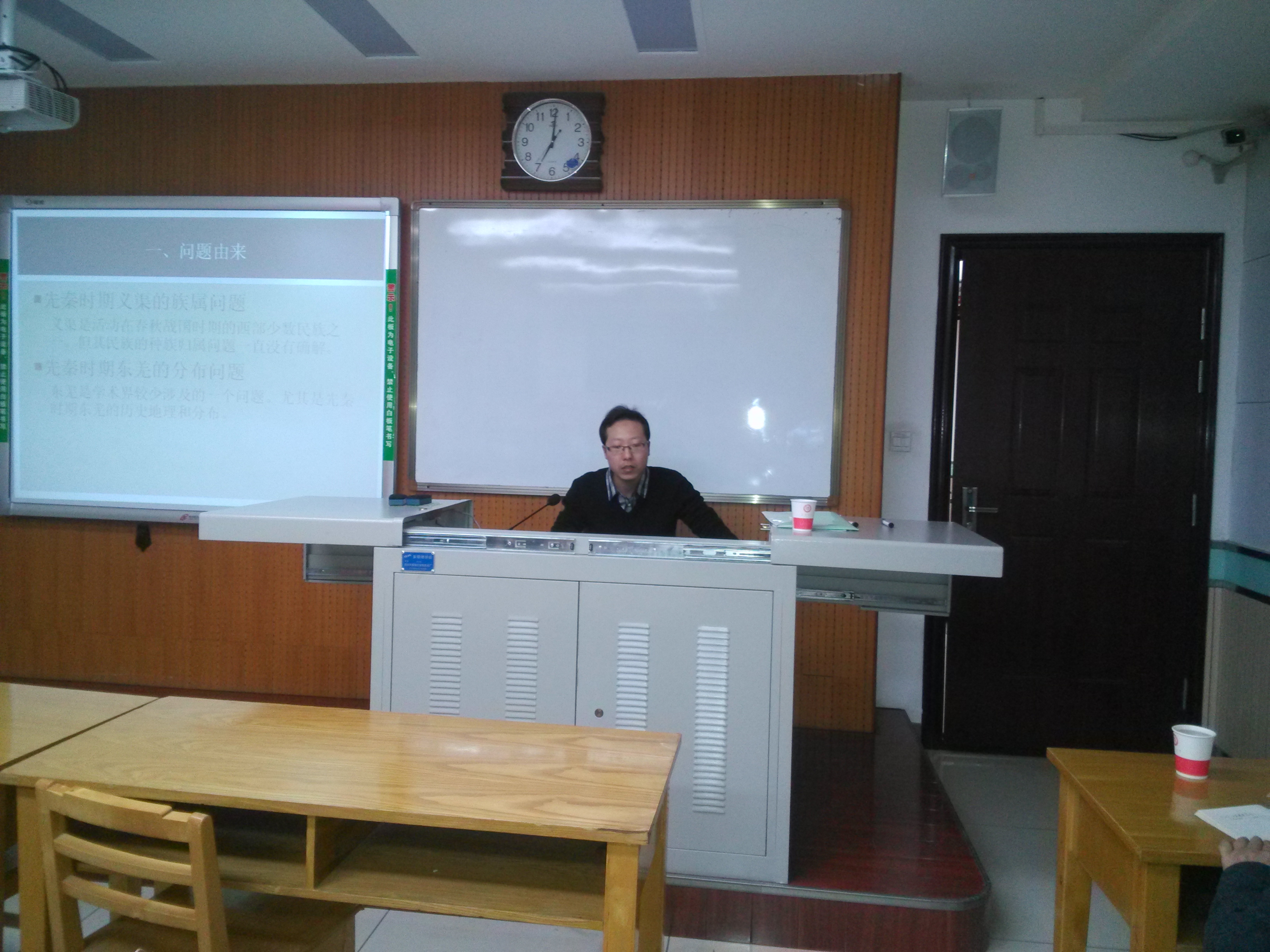 2013年12月10日晚七点,陕西师范大学“第二届大学生课外学术科技作品博览会”精英论坛在长安校区文津楼515教室举行。本次论坛(我院研究生“日新论坛”第73讲)由我院博士生武刚主讲,讲座题目为《义渠东羌问题》,该文荣获陕西师范大学“第二届大学生课外学术科技作品博览会”社会科学学术论文类特等奖。本次活动邀请到我院教授、博士生导师王晖老师进行点评,由我院研究生会学术部部员陈娇主持。