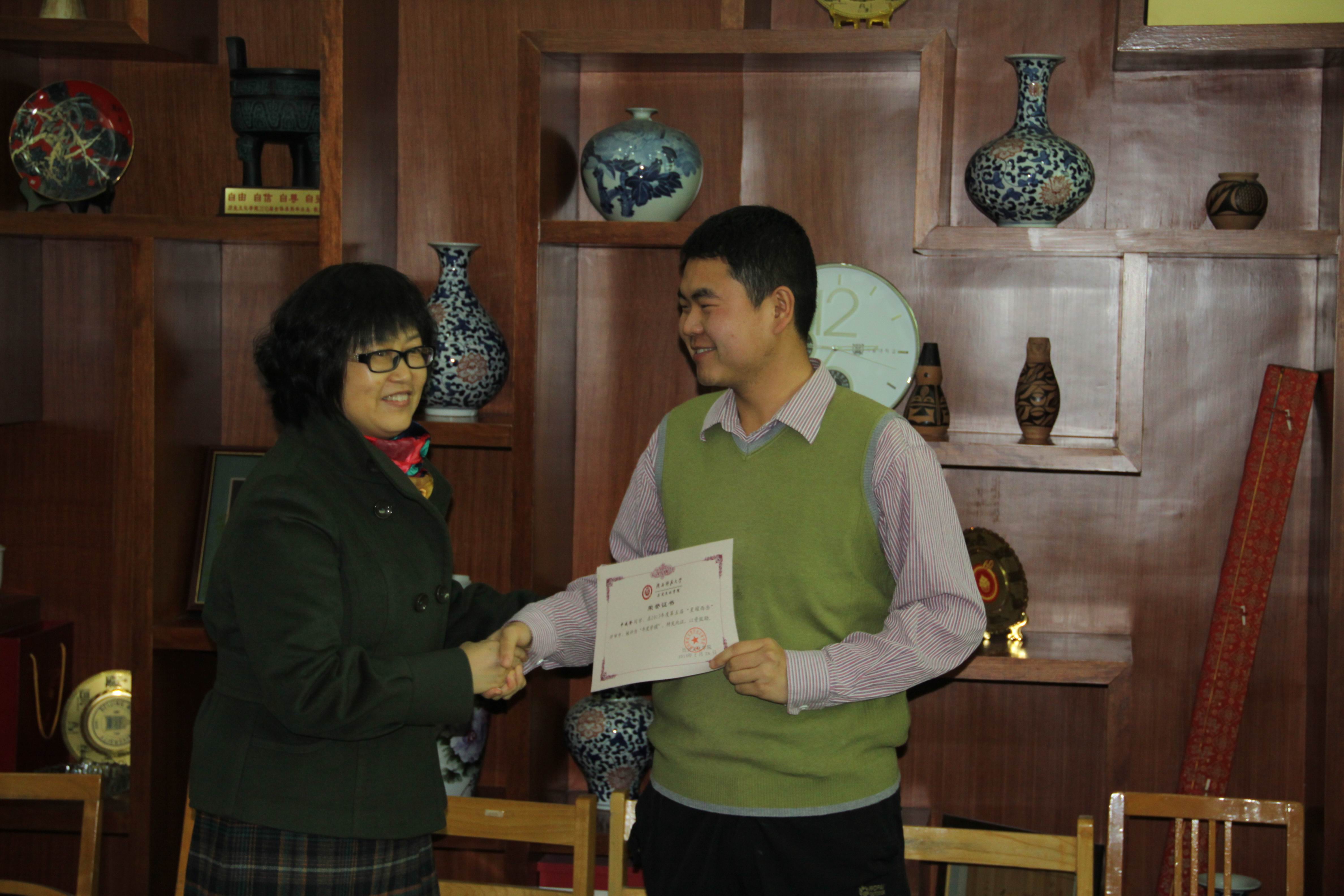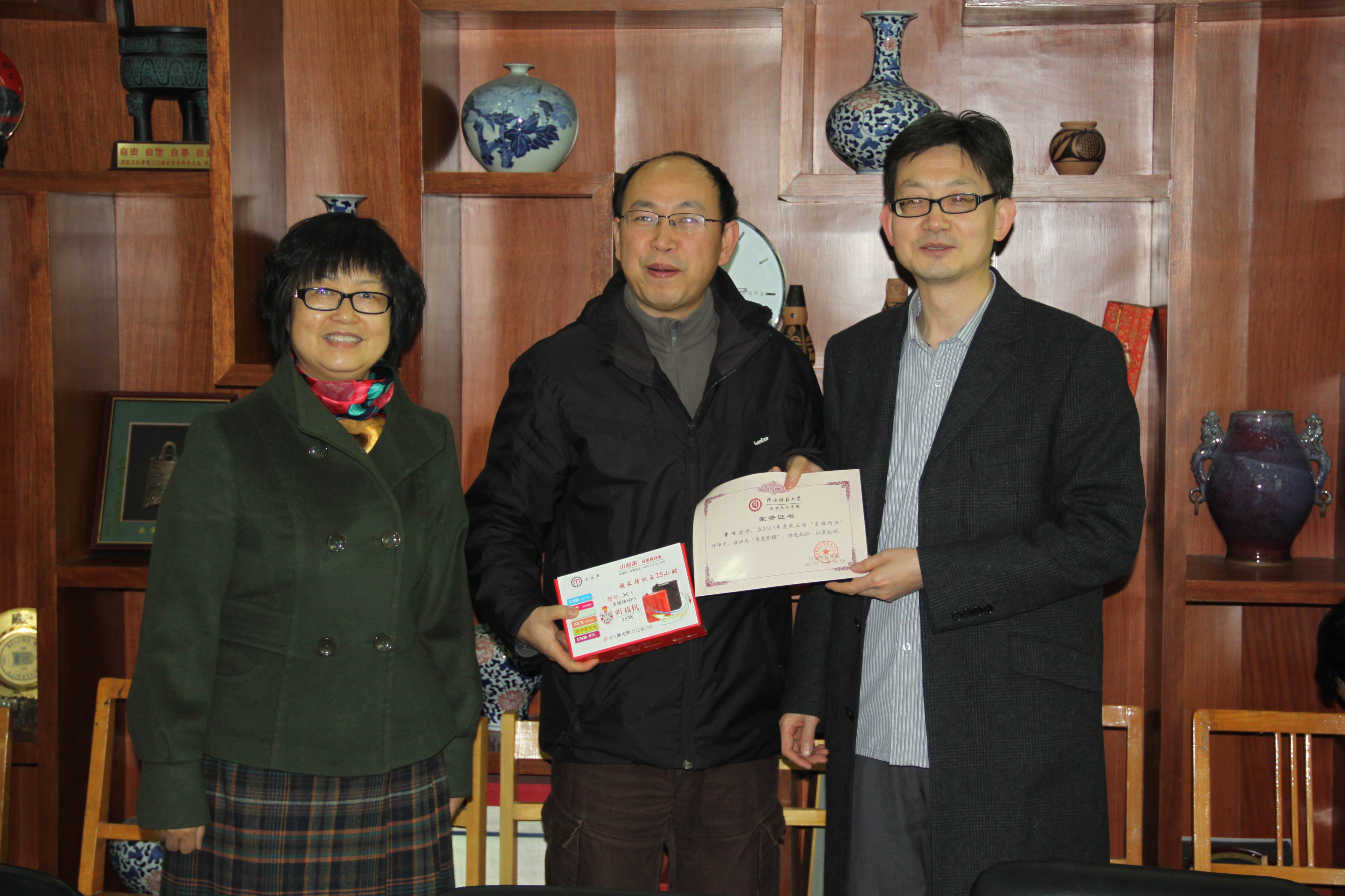 2014年3月6日星期四下午,2013年度第五届“星耀西岳”颁奖暨论坛建设座谈会在学院三层多媒体召开。首先,院领导及颁奖嘉宾为2013年度第五届“星耀西岳”获奖者进行了颁奖;颁奖仪式后院领导、论坛负责人及获奖者就论坛和网络课程建设等问题进行了深入的探讨,张光伟老师向参会人员做了关于MOOCS课程的介绍。