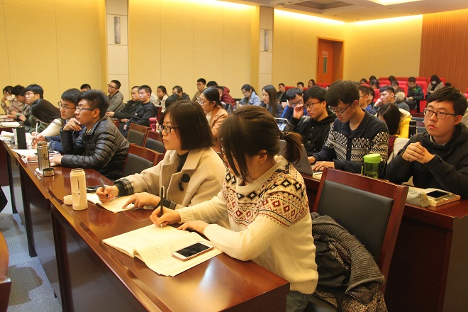 【集贤讲堂】2017年12月10日消息(撰稿:杨正艳;拍摄:张诗曼)12月10日晚,集贤讲座第228讲在长安校区文汇楼A区一层报告厅举行。著名学者、东北师范大学副校长韩东育教授做了题为《前近代“宗藩体系”解体的隐秘逻辑——对〈中日修好条规的再认识〉》的讲座。韩东育教授主要从事日本史、东亚思想史和东亚国际关系史等领域的研究。本次讲座由院长何志龙教授主持,我院教师王成军、李大伟、王春阳和学院研究生参加了讲座。