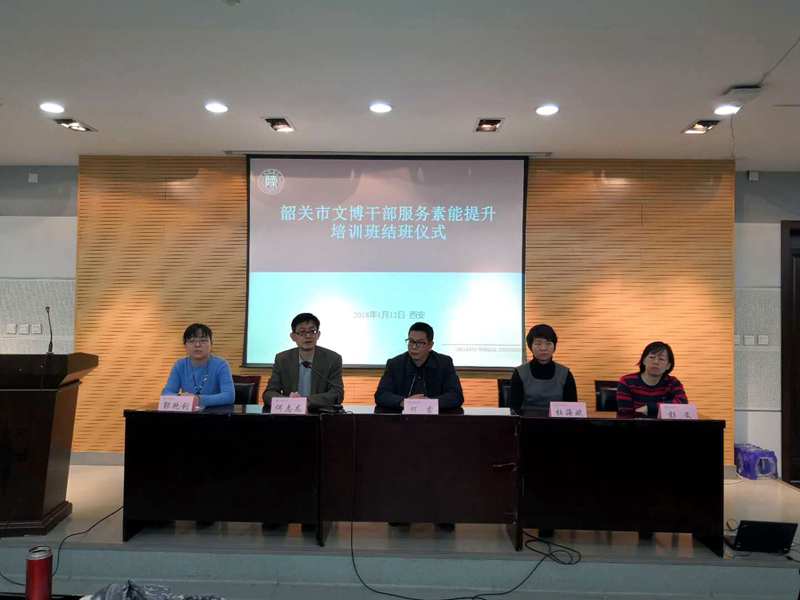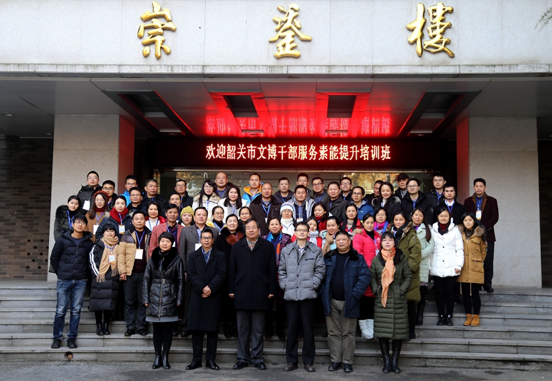 2018年1月8日,由我院承办的“韶关市文博干部服务素能提升培训班”在我校雁塔校区崇鋈楼闻道堂举行。我校副校长、国家文物局文博人才培训示范基地主任党怀兴,我院院长、国家文物局文博人才培训示范基地副主任何志龙,学院党委书记杜海斌,韶关市博物馆馆长何露及市文博系统干部60余人参加了开班典礼。我院副院长、国家文物局文博人才培训示范基地副主任郭艳利主持了开幕式。