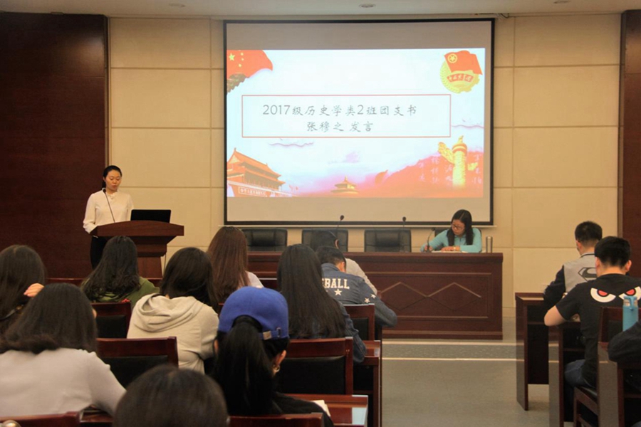 首先,发言的代表们结合自己实际就习近平新时代中国特色社会主义思想“四进四信”进行了学习交流。会上,17级历史学二班团支书张穆之同学首先结合自己做团支书的工作和大家分享了自己的所学所感;随后,青年志愿者协会代表常诗曼对青协近期工作进行了总结;之后,马列读书社代表张文琴就马列读书社组织构成及一年来活动发展情况做了简要介绍,并对活动中存在的问题及改进地方进行了总结。通过此次交流会,进一步推动了学院团员骨干深入学习贯彻习近平总书记系列重要讲话精神,同时应积极用讲话精神武装自己的头脑,发挥自身的旗帜作用,积极向身边同学传播正能量,号召同学们以蓬勃向上的活力和有所作为的心态投入学习“四进四信”精神活动中。
