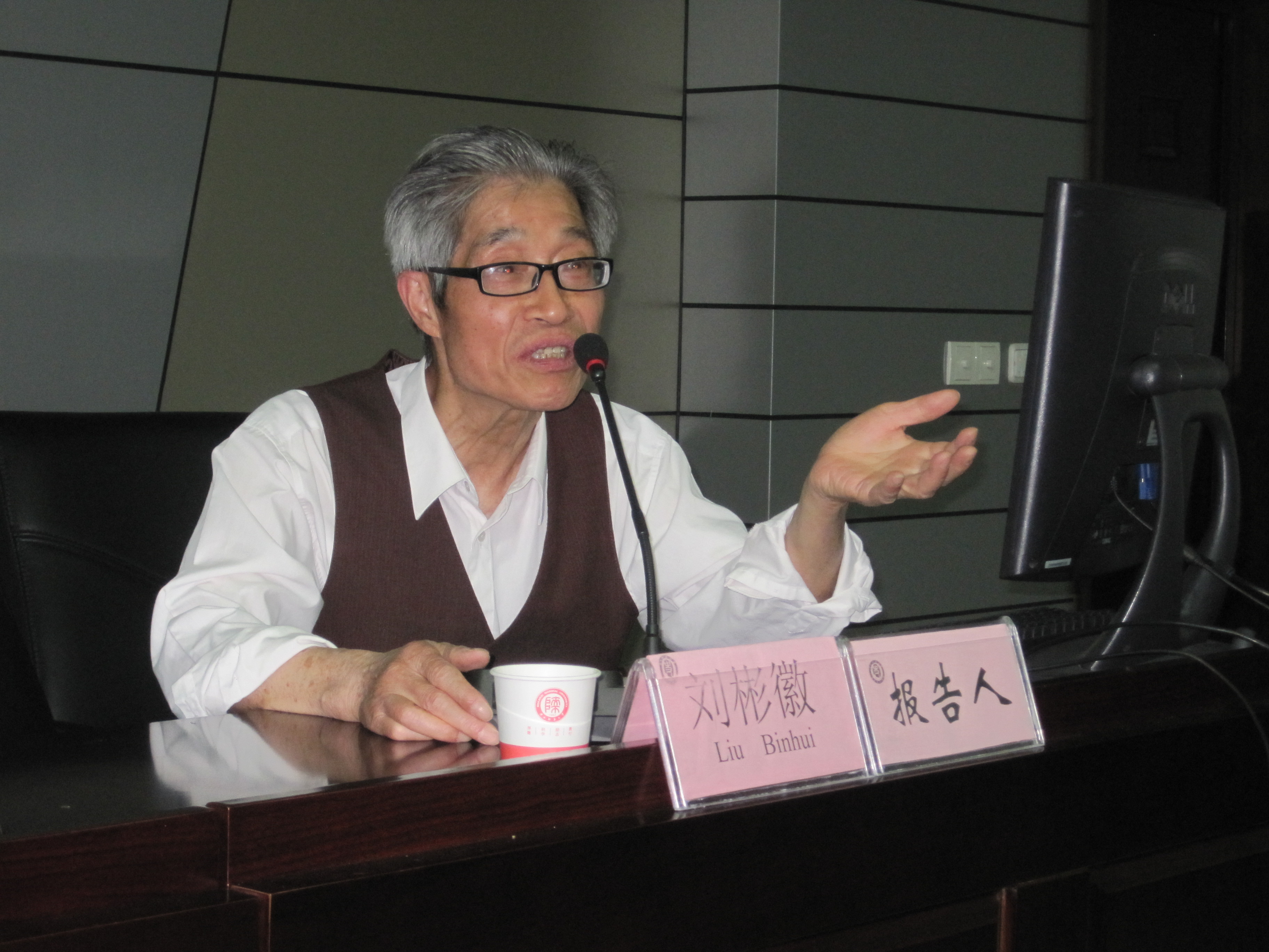 刘彬徽研究员从四个方面展开此次讲座:第一,楚地殷商青铜器的重要新发现;第二,楚地西周乐钟等的重要新发现及其讨论;第三,新出土或公布的东周楚地某些青铜器论述;第四,新近购回的楚地青铜器的某些讨论。刘先生在报告过程中展示了大量楚地出土青铜器的图片,它们大多器形精美,纹饰华丽。其中不乏上乘之作,有在国内外占据显著地位的“罍王”等器物。报告结束时,刘先生谈了自己研究楚文化的一些感想:研究先秦历史文化,要重视考古资料;探索中华文明的起源更要关注四周,尤其是长江流域的文化,不应局限于对中原文化的研究;结合新的考古资料,对于楚文化的地位要有一个新的评估。最后,刘先生真挚地希望有志于先秦研究的学生能够青出于蓝而胜于蓝,取得更好的成果。刘先生的博学与谦逊赢得了现场听众的阵阵掌声。