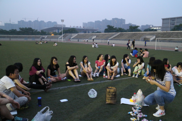 2014年6月2日19:00,2010级博物馆班与历史创新实验班心理班会在田径场草坪上举行,本次班会以“打开一年前的许愿瓶,见证我们的努力”为主题。本次班会由博物馆班心理委员牛丹主持。