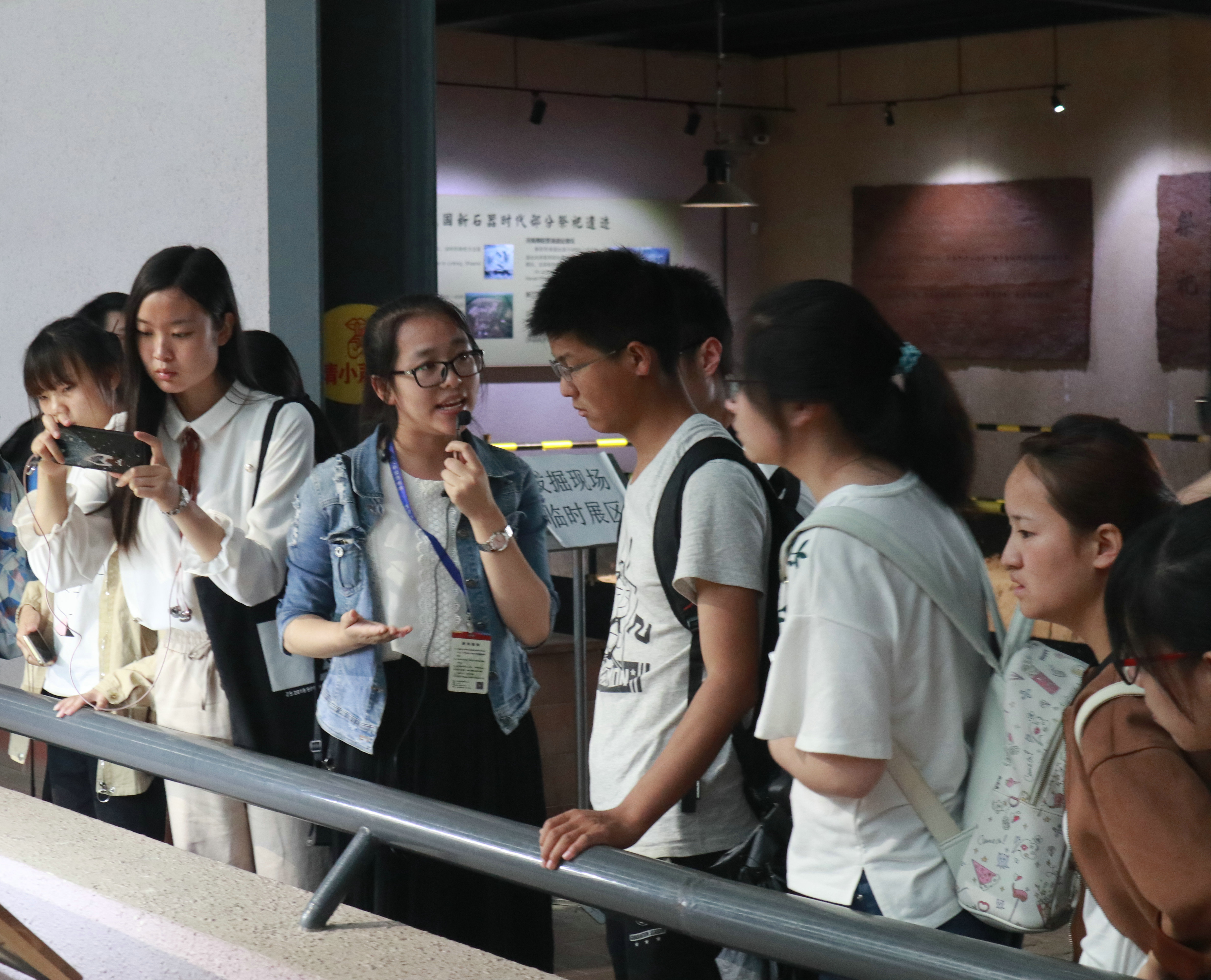 新区由王彪同学带队,老区由王宇同学带队,分别前往博物馆。两队十点到达博物馆集合并在台阶处合影留念。随后分为四组,由半坡志愿者带领进行参观。