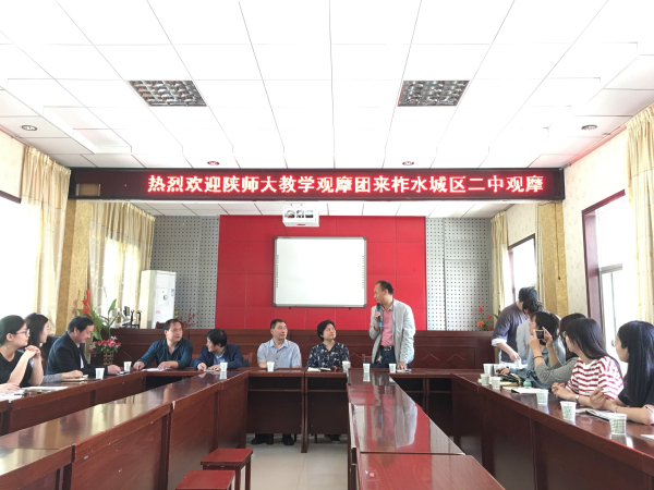 观摩活动结束后,李均良校长给师大师生介绍了学校课改发展状况,介绍了新课改的原因、目的,以及该校实行的“524”课堂模式。他强调,课改课堂能最大限度的调动学生的积极性、培养学生自主学习的意识和能力,有助于学生的长远发展。该校历史集备组组长简要回答了同学们提出的几个问题,分享了他在新课改模式下备课、上课的经验和思考,为即将实习的同学们提供了一些实践性强的方法和建议。在柞水县城区第二初级中学的交流会上,蔡娜副教授特别提醒,同学们在听课活动中,要多注意观察师生之间的互动,学习课堂提问的技巧、调动课堂活跃气氛方法,并将之运用于自己的微格教学中。