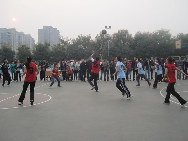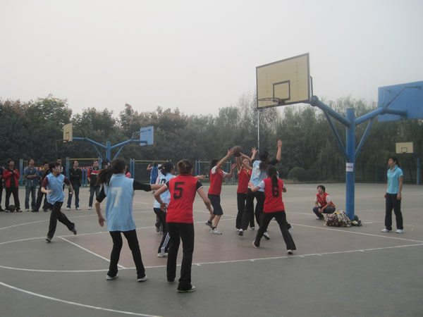 10月21日下午,“迎新杯”篮球赛女篮半决赛在长安校区篮球场举行。