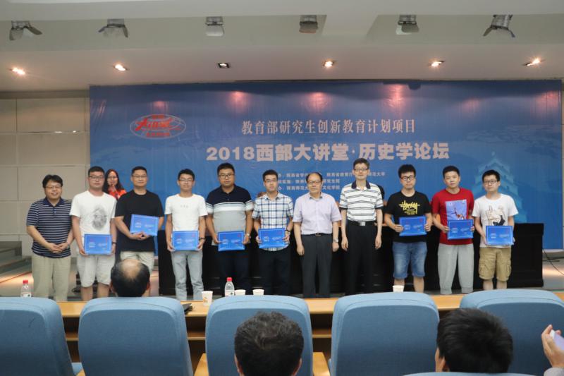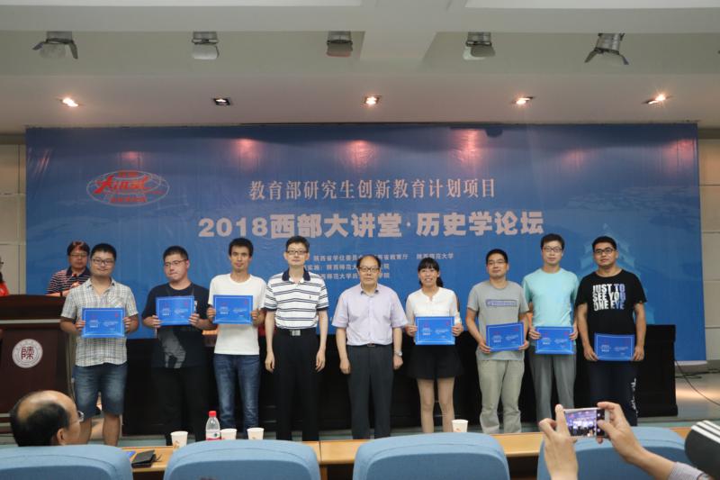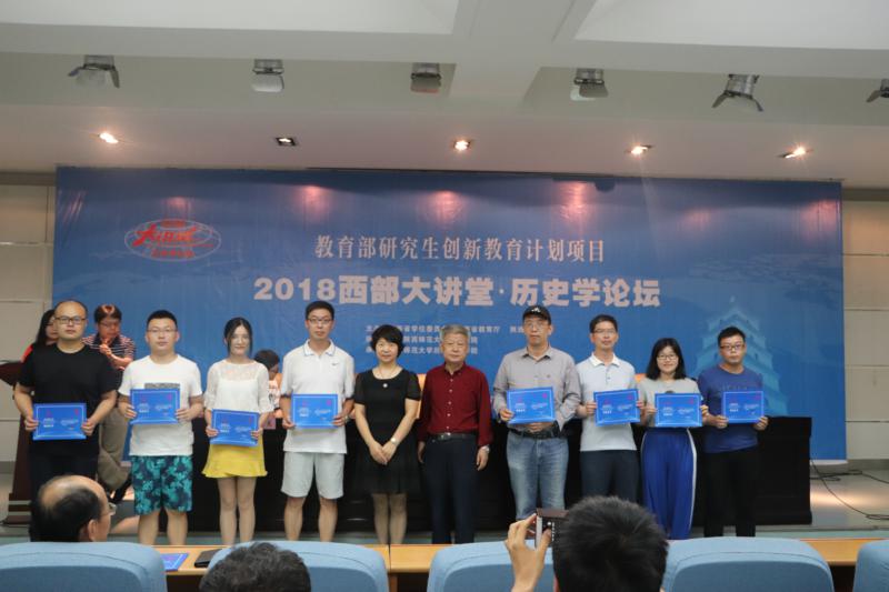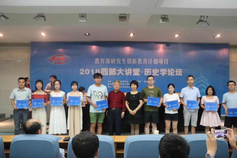 最后由王铁铮教授、何志龙院长,杜海斌书记、王成军教授,曹伟副院长、王春阳老师分组为学员们颁发了2018“西部大讲堂·历史学论坛”结业证书并合影留念。