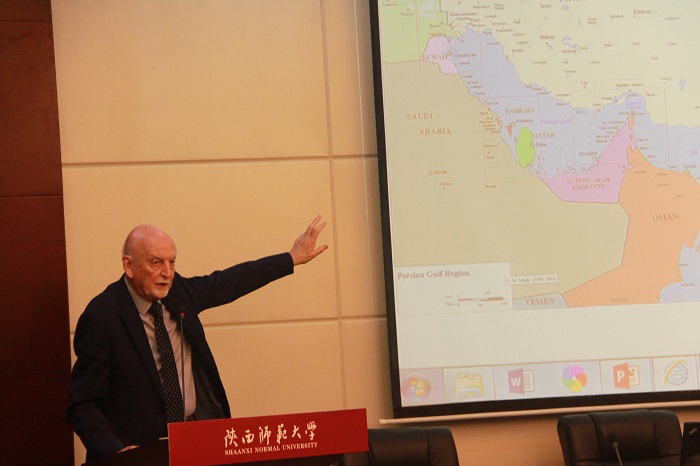 【集贤讲堂】消息 9 月25晚晚,集贤讲堂第260讲在文汇楼A区一层报告厅举行。国际著名中东史和中东问题专家、英国埃克塞特大学政治系教授、阿拉伯伊斯兰文明研究中心创始人,我院特聘教授蒂姆·尼布洛克(Timothy Niblock)主讲 “海湾地区冲突的动因分析(Conflict in the Gulf Region: Explaining the Roots of Conflict)”。副院长李秉忠教授主持讲座。