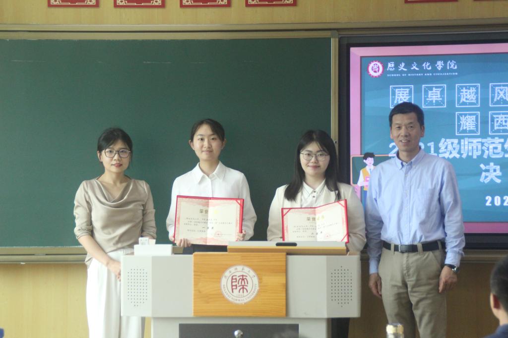 赛前,评委们首先为近期在第三届统编历史教材“精彩一课”全国教学大赛和陕西省第二届高校师范生教育教学能力大赛中获奖的学院优秀学生颁发荣誉证书,希望全体师范生向身边的榜样看齐,在成为卓越教师的道路上勇攀高峰、再创佳绩。