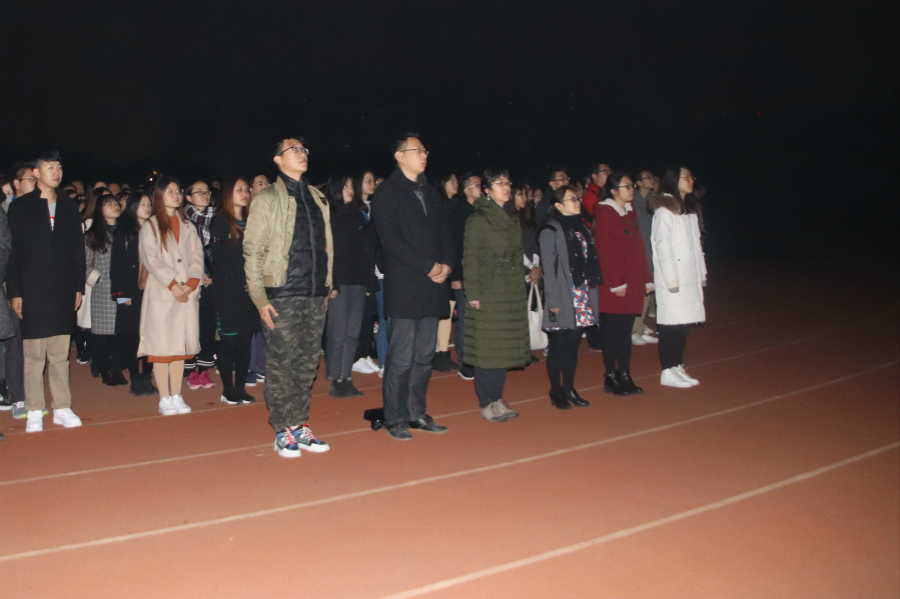 2018年11月12日凌晨,我院于长安校区运动场举行新学年首次升旗仪式。党委副书记程蕾、副院长郭艳利、辅导员王欢、各年级兼职辅导员以及各年级本科生参加了本次升旗仪式。