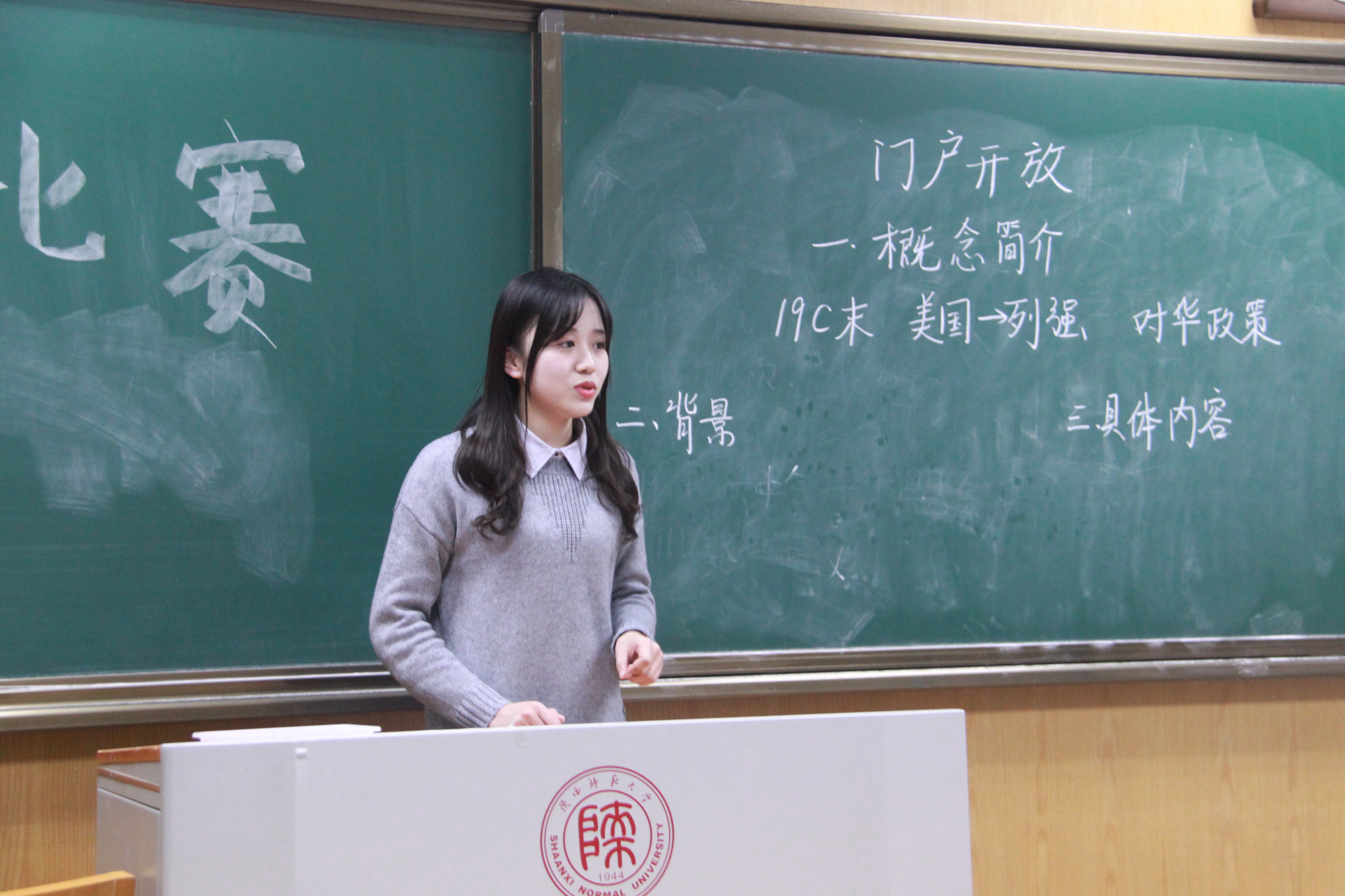 首先,主持人介绍了莅临本次比赛的评委老师,并对比赛流程等内容进行详细说明。随后,比赛正式拉开帷幕,选手五人一组以抽签顺序依次登台,为同学们带来精彩的讲课。姜晓雪同学语言条理清晰,深入浅出地分析了程朱理学;苏育华同学板书严谨工整,深刻剖析了五四运动;聂康妮同学以生动形象的语言为同学们解读辛亥革命,其导课方式让人眼前一亮;郭仁卿同学讲课幽默风趣,轻松自然,与同学们互动良好。