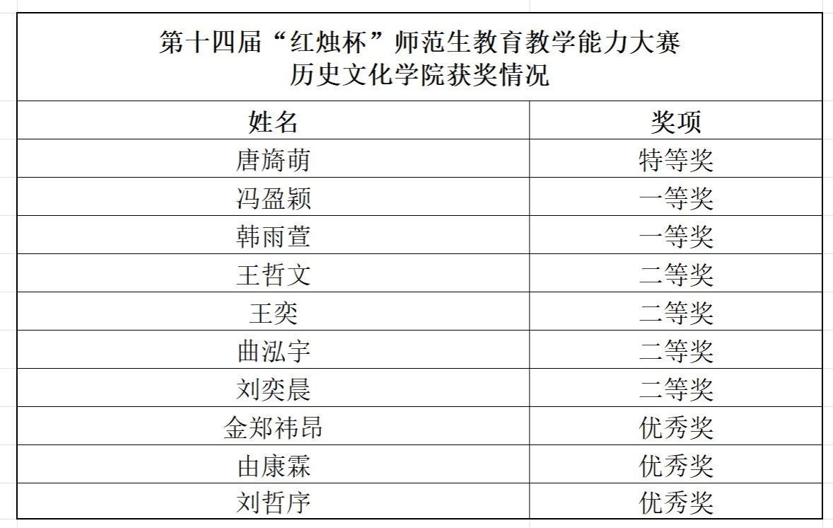 在大赛过程中,我院高度重视并积极组织备赛,学院历史教育学学科带头人徐赐成教授、历史学科教学论专业教师蔡娜副教授、学院教学副院长郭响宏副教授全程指导学生备赛。经过“班级初赛-学院决赛-校级复赛-校级决赛”四个环节,在学院的周密谋划组织、专业教师的悉心指导、参赛同学的精心准备下,参赛选手们不断打磨教学内容,完善教学技能,取得了优异的成绩。最终,我院唐旖萌同学获特等奖,冯盈颖、韩雨萱两位同学获一等奖,王哲文、王奕、曲泓宇、刘奕晨四位同学获二等奖,金郑祎昂、由康霖、刘哲序三位同学获优秀奖。
