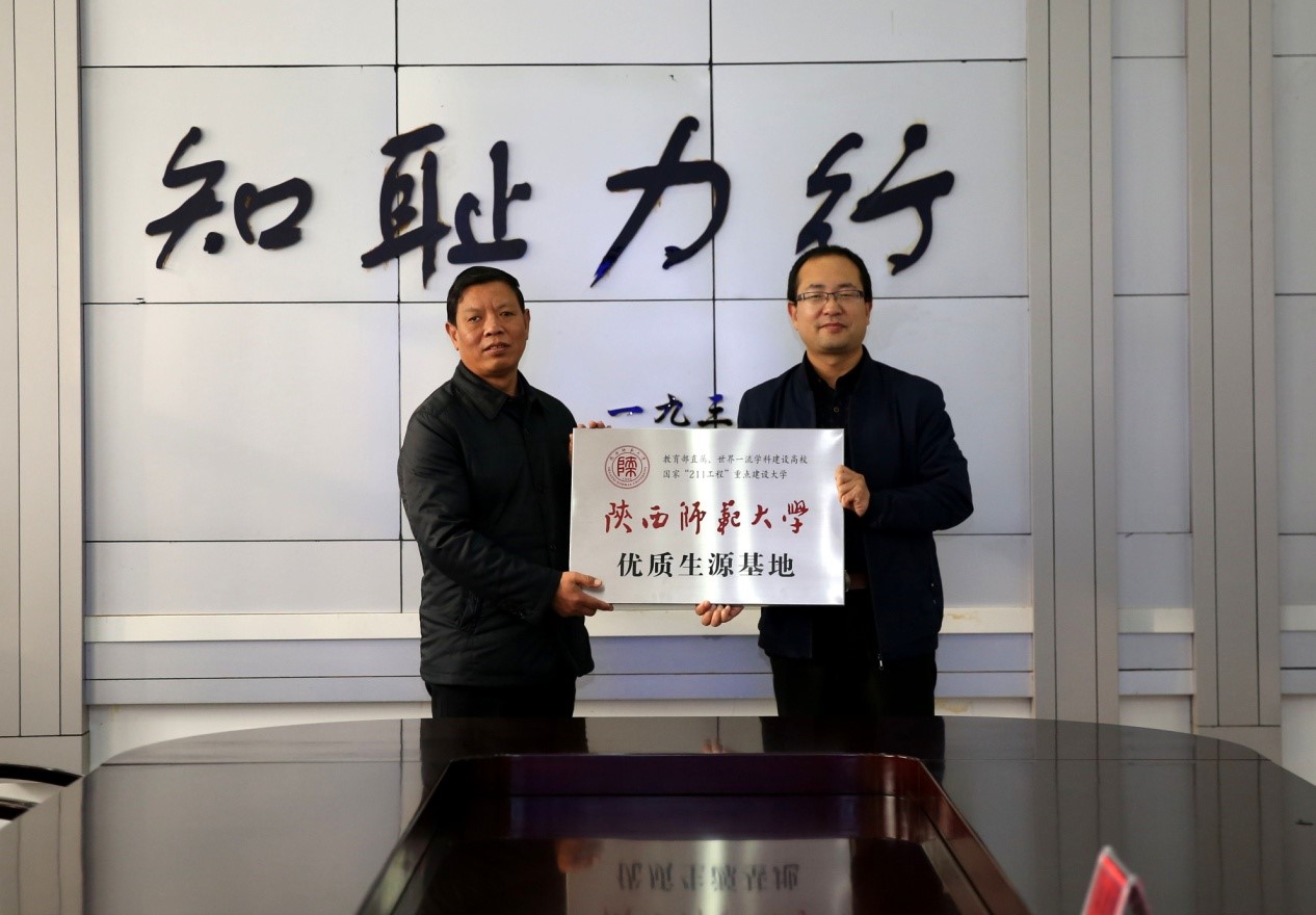 最后,郭响宏副处长与董兵计副校长签订了陕西师范大学优质生源基地合作协议书,与刘智广校长进行了“陕西师范大学优质生源基地”授牌仪式。