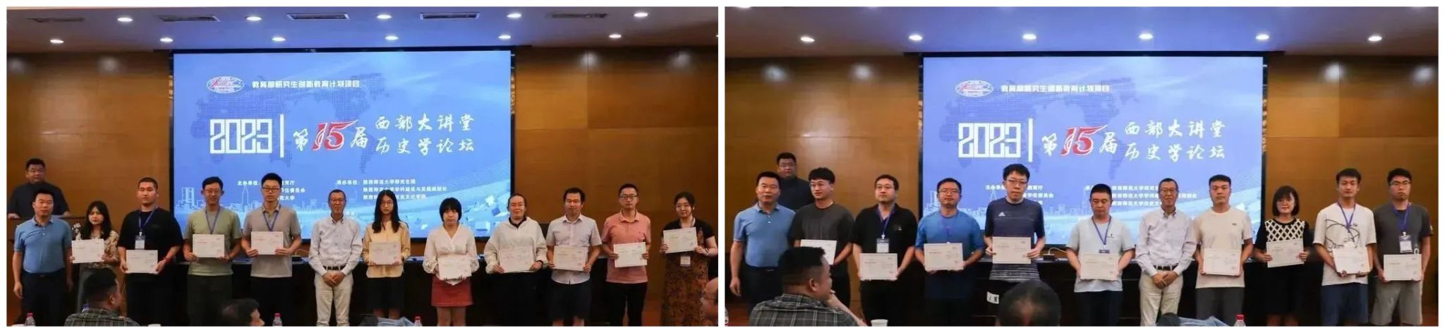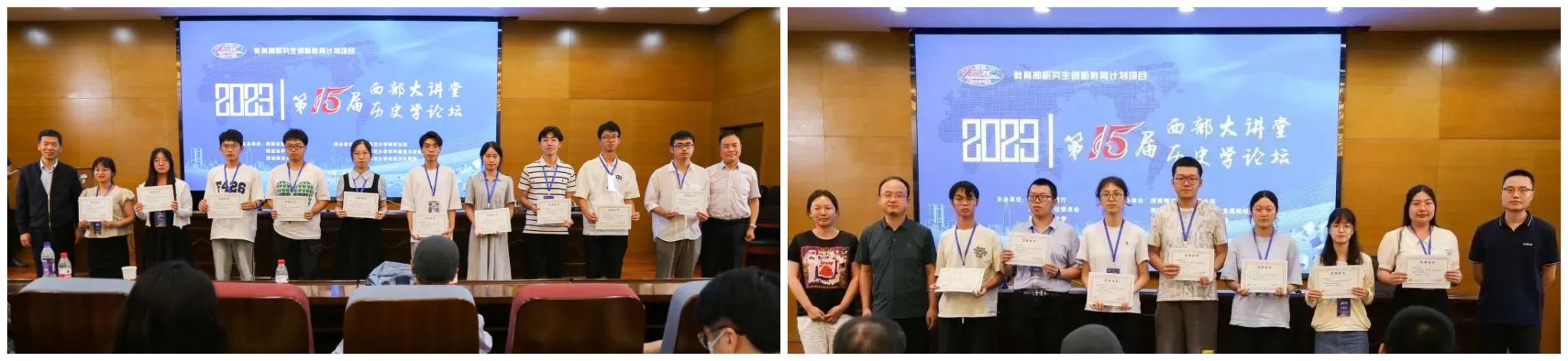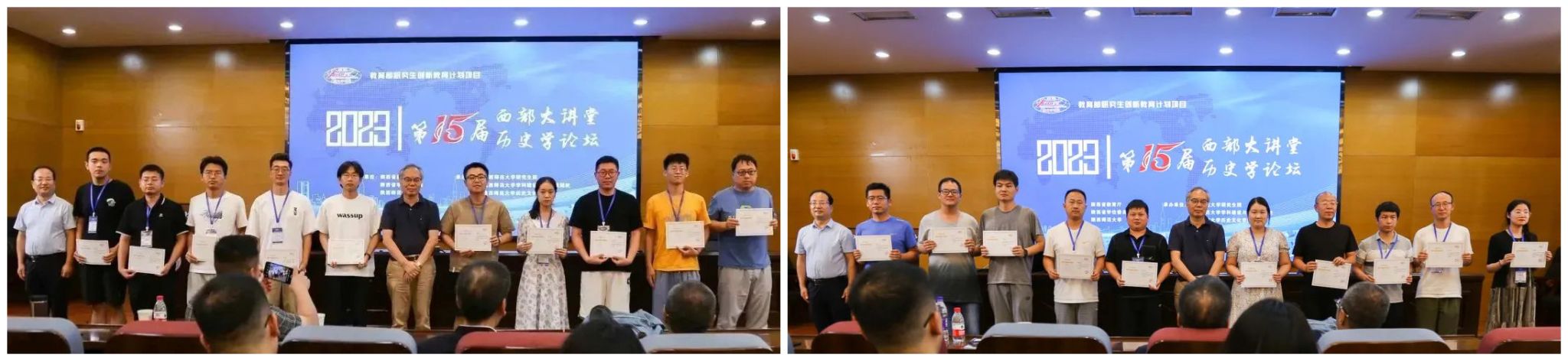 学员代表发言结束后,赵亚夫、孙伟、郭富斌、郭响宏、任鹏杰、徐赐成等老师为西部大讲堂学员、暑期夏令营营员颁发结业证书,并合影留念。