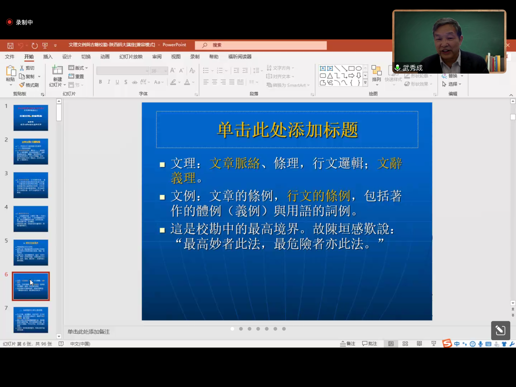 武秀成教授在唐宋文献整理与研究及古籍校勘领域颇有建树,出版有《〈旧唐书〉辨正》《玉海艺文校证》等研究成果,这次他以“文理文例与古籍校勘”为题,选取典型的校勘案例,通过抽丝剥茧的细腻解析,展示了在古籍校勘工作中如何巧妙利用文理和文例来发现问题并解决问题。