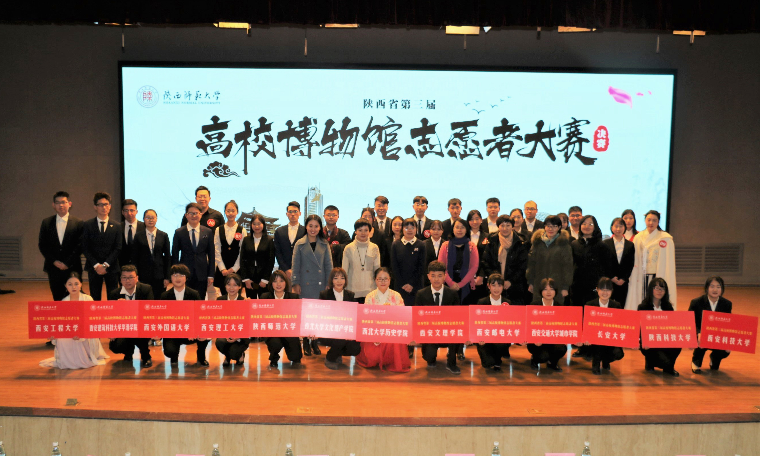 12月11日,由陕西省文物局和我校主办,威廉williamhill体育承办的陕西省第三届高校博物馆志愿者大赛在我校成功举办,共有来自西安交通大学、西北大学、长安大学、西安邮电大学、西安外国语大学、西安建筑科技大学、陕西科技大学等13支高校代表队参赛。陕西省文物局博物馆与社会文物处副处长李娟,陕西历史博物馆志愿者工作委员会秘书长苏白雪,西安博物院教育推广部副部长张莉、讲解培训工作负责人薛瑞芳,西安半坡博物馆宣教部副主任王颖娟,西安碑林博物馆柳慧,教务处副处长石洛祥,校团委副书记戴璐,威廉williamhill体育党委书记杜海斌、副院长郭妍利、副书记程蕾以及文物与博物馆专业教师杨瑾、朱君孝出席开幕式。