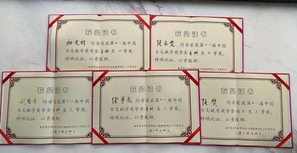 2024年4月15日,第十八届“中国古文献学奖学金”评奖结果正式揭晓。我院文献学专业共有5名学生分别获得一、二、三等奖。