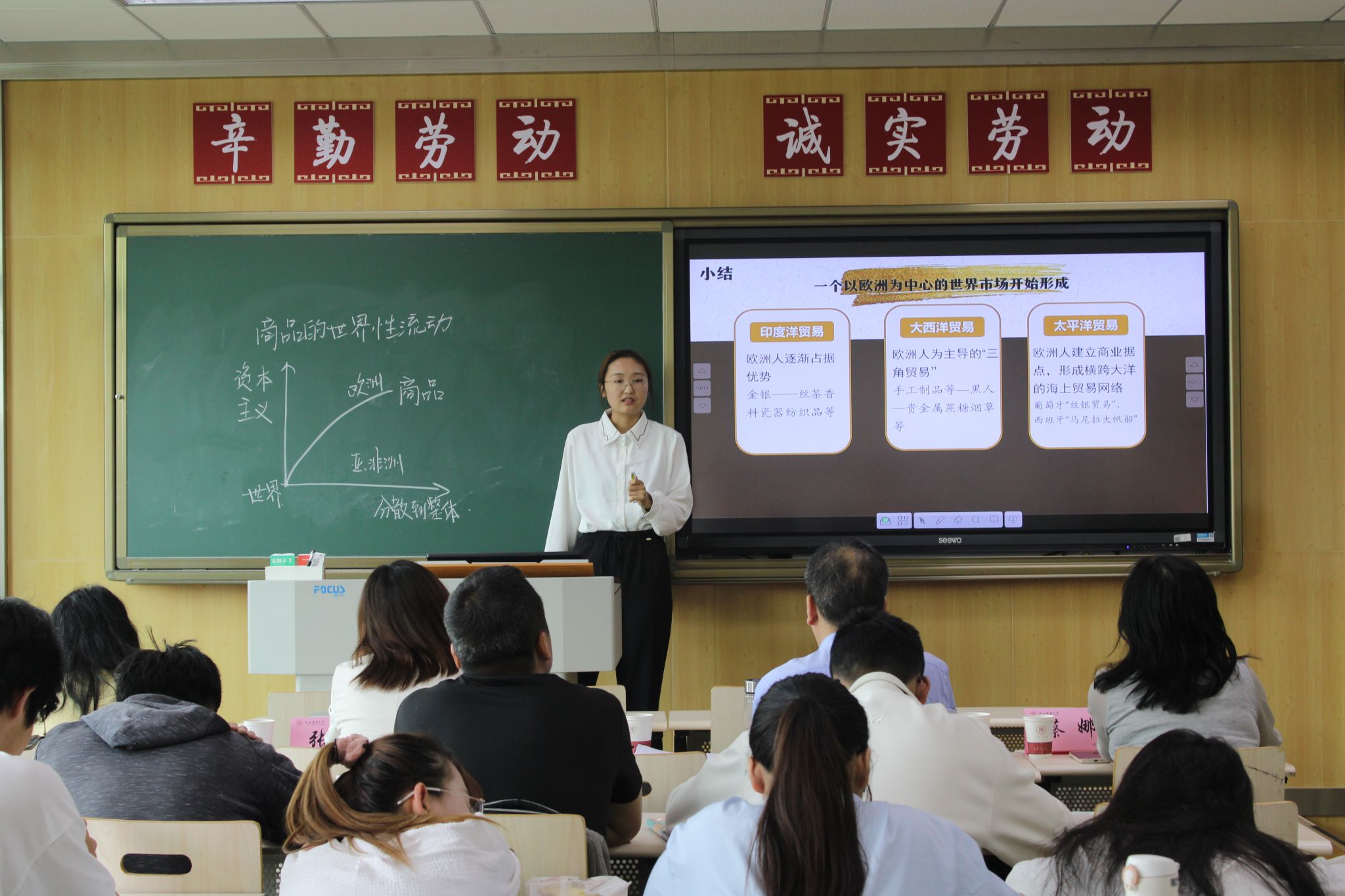 比赛以八分钟课堂教学展示的形式进行。参赛选手们的授课内容跨越古今中外,涵盖政治经济文化外交等各个方面,或以小观大,或由因析果,并以精巧的教学设计、多样的教学手段,展现了我院学子扎实的专业技能与优秀的教师素养。