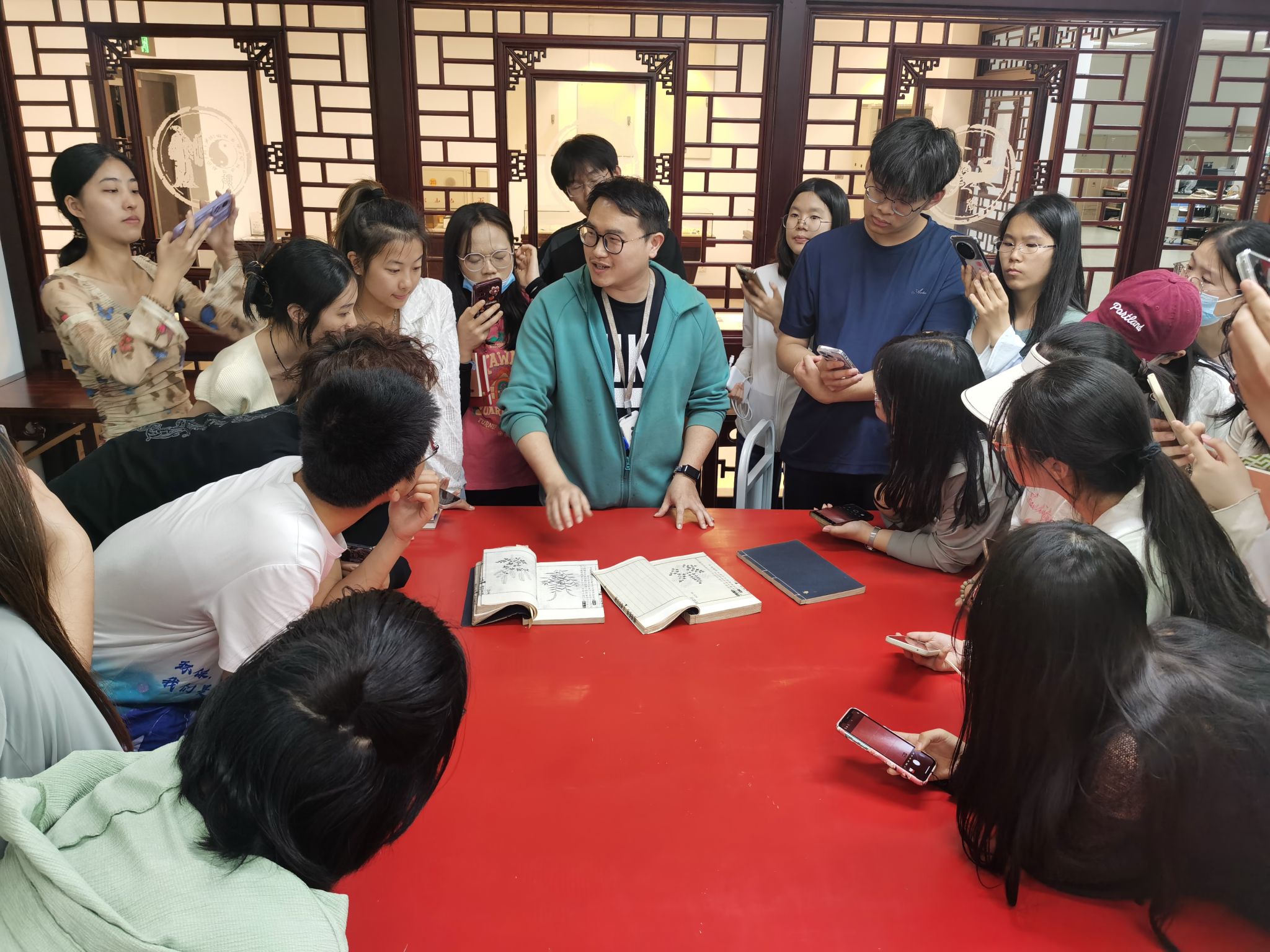 在南京图书馆古籍部,古籍部负责老师对所藏珍本的讲解与展示,给同学们留下了深刻印象。负责老师特别展示了珍贵的影宋抄本《野菜博录》,强调了其使用的纸张“薄而洁凈”的特征。通过这一实例,韩老师阐释了“影抄本”的定义,即“严格依照原书样式,连文字、版框、栏线、鱼尾等细节都一丝不苟地影描下来”。他强调,影抄不仅要求书法风格与原版保持一致,版式也必须丝毫不差,这是“临摹”难以达到的精确度。