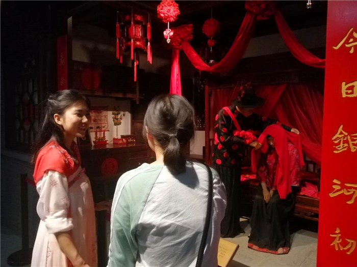 紧接着同学们前往宝鸡民俗博物馆。该博物馆浓缩了大量的宝鸡民俗事象,分为“西府人生”和“宝鸡风尚”两部分。“西府人生”部分以“人生礼俗”为主线,分为“人之初”、“婚假娶”及“福禄寿”三个部分,展现了一部精彩的礼仪、观念人生史;“宝鸡风尚”部分则以宝鸡人的世俗生活为主线,向游客展示了宝鸡人生产生活中求富、求美、求乐的心愿和独特的地域风尚。