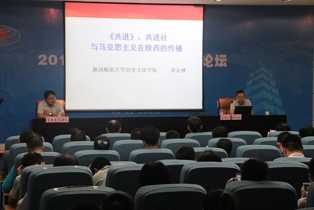 黄正林教授从四个方面进行了梳理马克思主义在陕西传播的问题。一是新文化运动与《共进》杂志的创办。主要从文化传承的角度,详细梳理了新文化运动一代一代传人与《共进》杂志是如何创办的问题;二是《共进》杂志政治倾向的转变。指出《共进》杂志创办时的宗旨是“提倡桑梓文化,改造陕西社会”,随着马克思主义思潮的传播,其宗旨转变为“提倡文化,改进社会”,《共进》逐渐成为宣传马克思主义的阵地。指出“《共进》杂志旗帜鲜明地宣传马克思主义,不管是对旅京陕籍青年还是在陕西本地读书的学生都产生了很大的影响,通过阅读《共进》杂志,使他们最早接触到了马克思主义思潮。”三是共进社及其政治主张。认为共进社的政治主张与中国共产党的最低纲领基本一致。四是“共进社群体”与马克主义在陕西传播。指出“共进社群体”团结在共进社的旗帜下,以《共进》为阵地,经受了五四新文化运动的洗礼,特别是受李大钊等共产党人的影响,刘天章、李子洲、魏野畴、赵国宾、刘含初、杨明轩等,加入了少年中国学会、马克思主义学说研究会等团体,成为陕西省最早一批接受和信仰马克思主义的青年知识分子,在他们的带动下,有一批共进社成员选择了信仰马克思主义,并成为马克思主义在陕西的传播者。